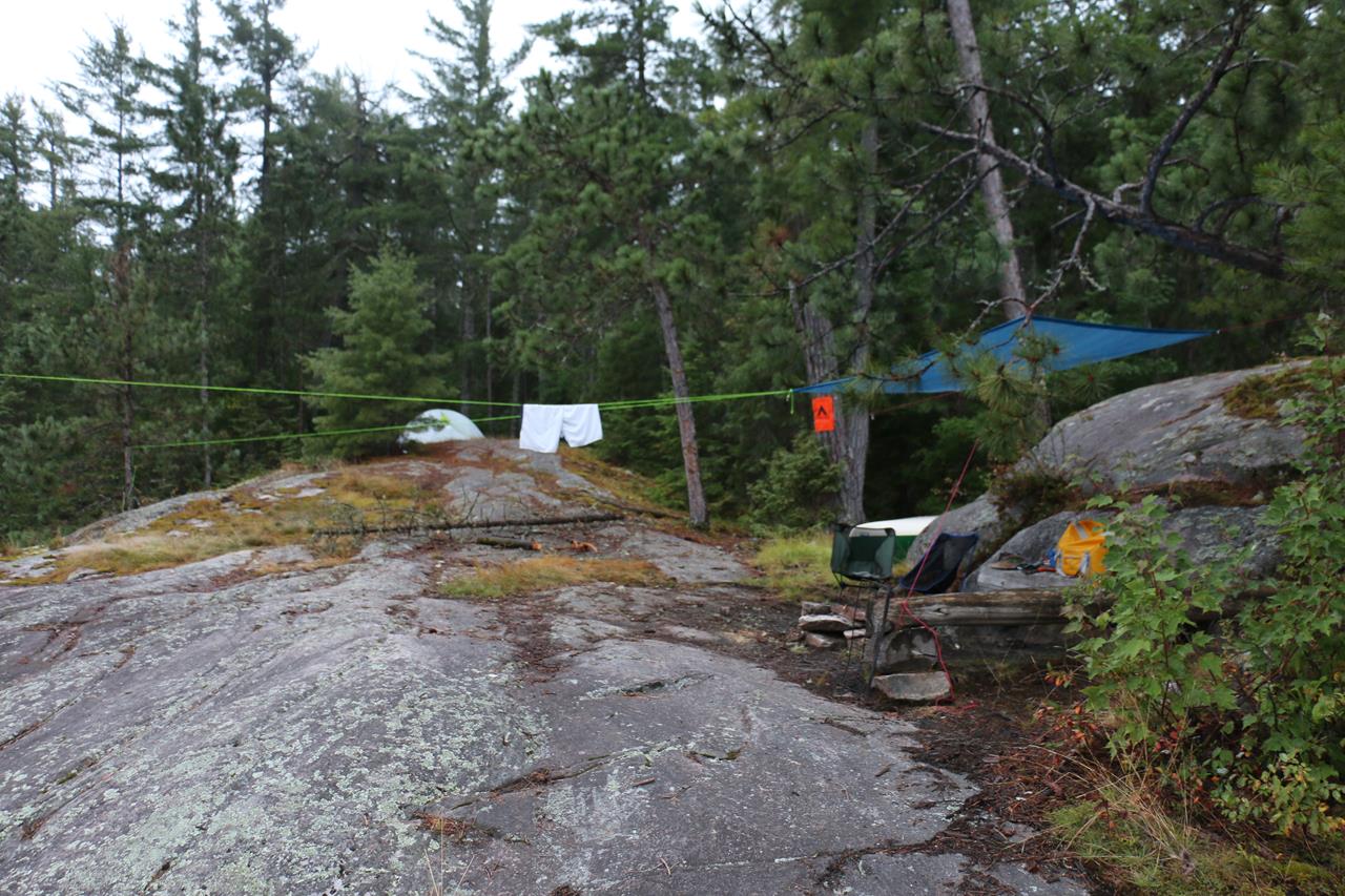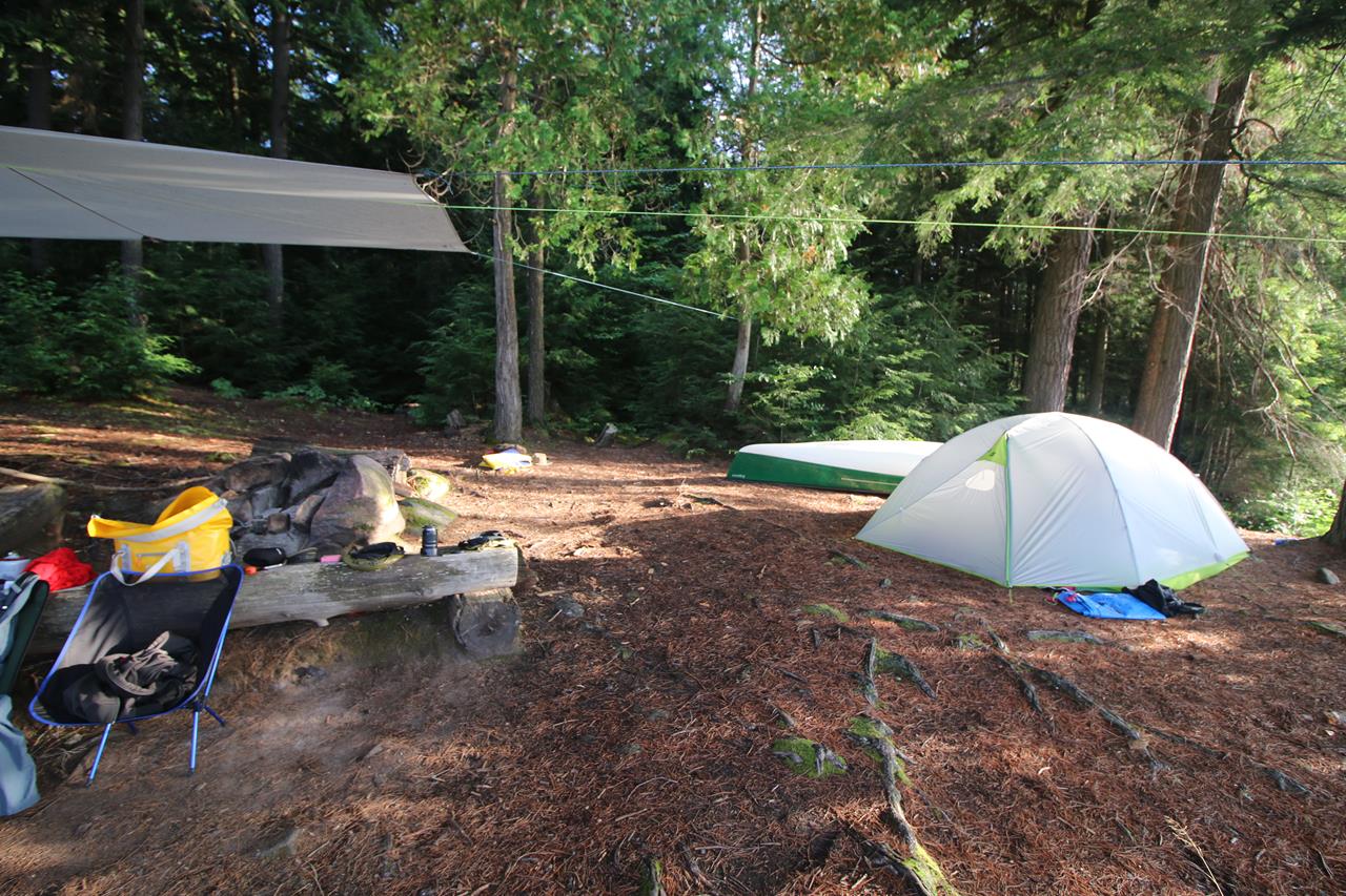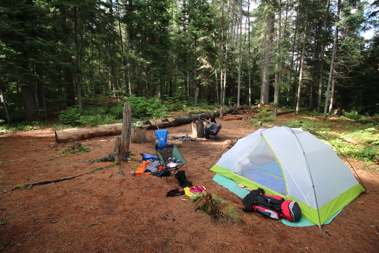| A quick view of the campsite – we sort of tossed everything around after having to move the location of the tent. The better of the two tent pads would’ve had sparks blown into the tent. |