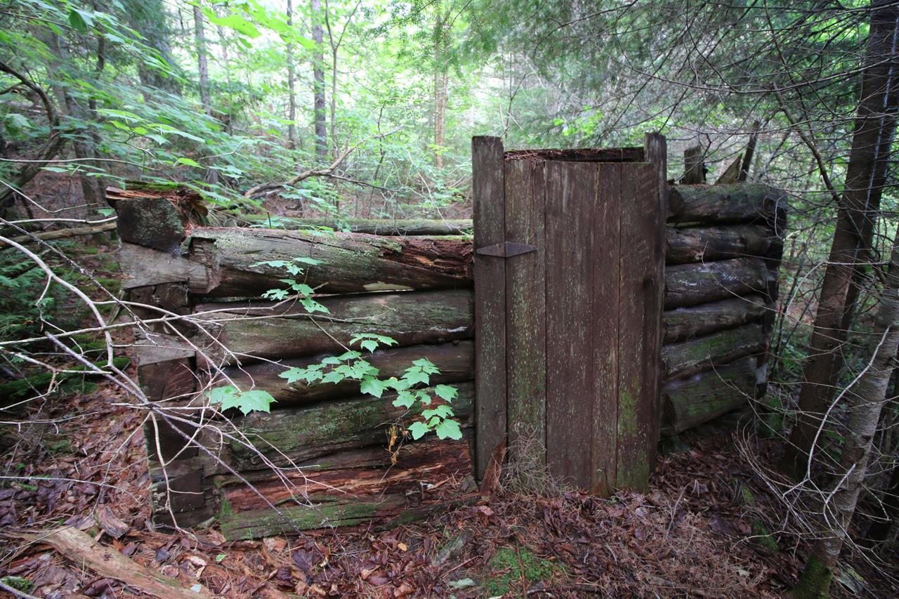 | The exterior front of the little cabin along the portage to Gouinlock Lake. |