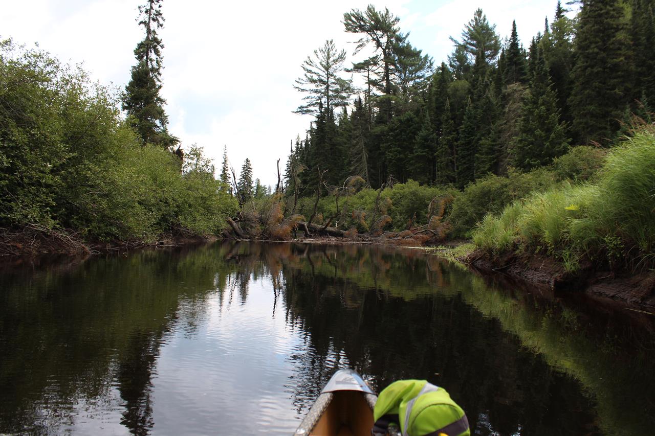 | Finally at the intersection of Maple Creek and the portage south to Skuce Lake. |