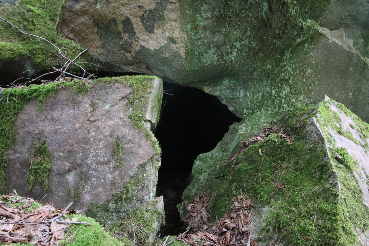 I picked up Angela at the other end of the trail and we continued downstream. A few minutes after the potage we arrived at a little swift that required river walking. The water levels were still fine so I offered to allow Angela to remain in the boat while I walked it down the deeper parts of the swift. She agreed and that’s what we did. It was nice to dip my feet in the water as it was still a warm day despite the rain earlier. Once we passed the swift I was back in the boat and we continued to paddle downstream. Shortly after 4pm we arrived at the fifth and final portage of the day and trip. A 915m portage leading to the Nipissing Delta on Cedar Lake. This was also the location of two ruins I wanted to check out – one at each end of the trail. The ruin on this end of the trail was a cave, and the other end supposedly has logging camp remains.