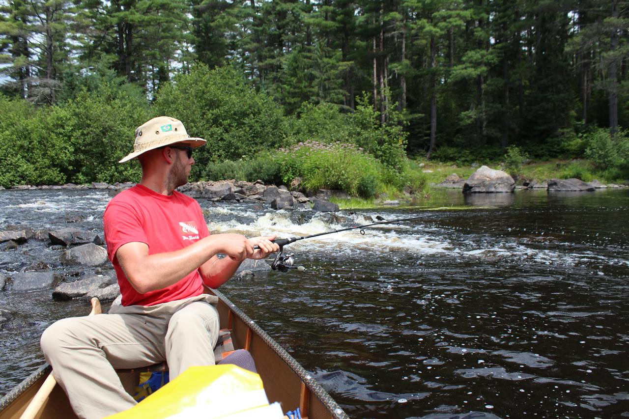 | Doing a little fishing at the end of the rapids at P230 on the Nipissing River. |
