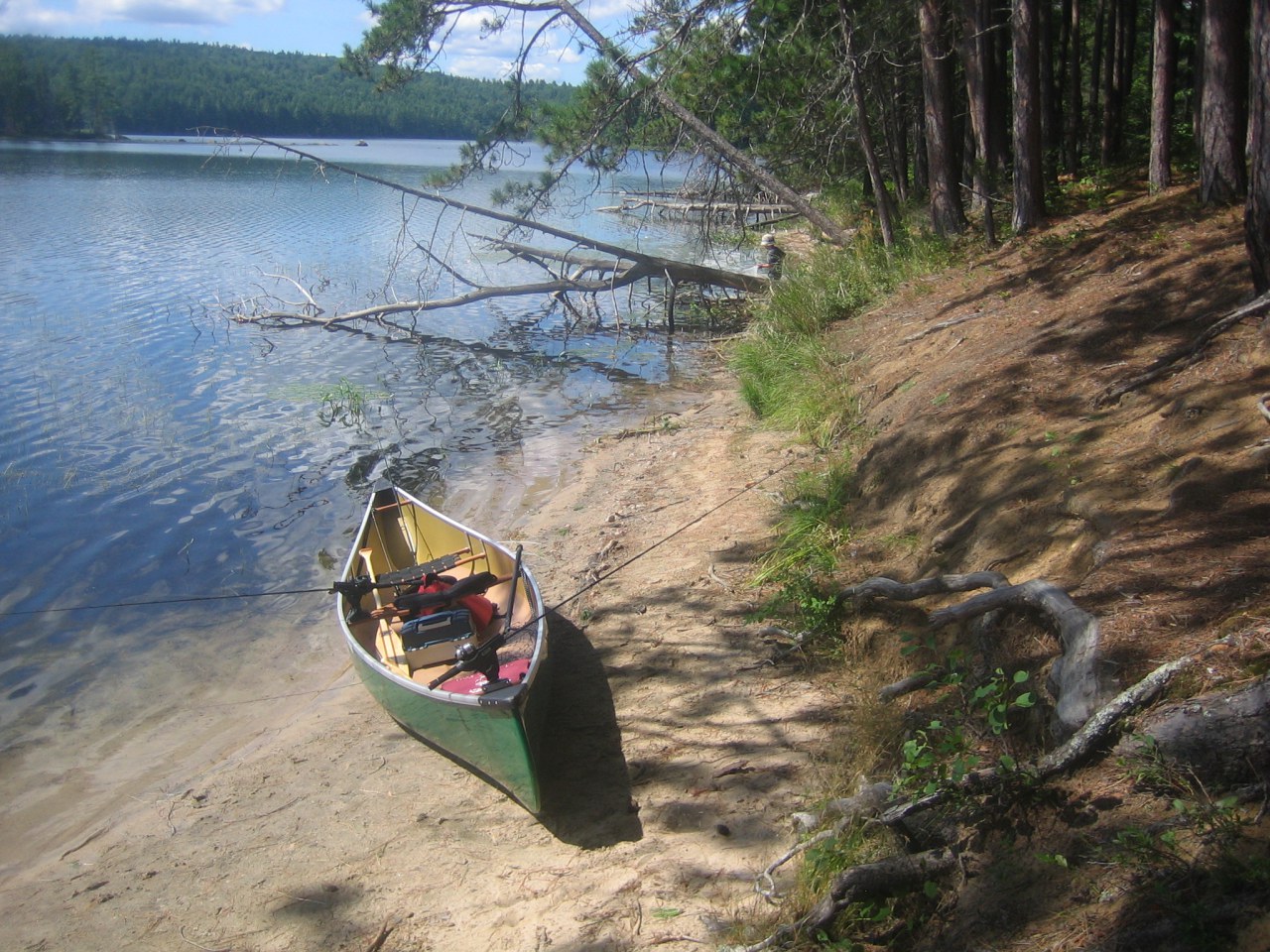 Despite having the car parked so close by, this trip was being done with minimal luxuries, a bit of a tester for future trips. We limited ourselves to what we could comfortably fit in a single trip down the lake. Since the Canoe Lk. debacle back in the spring, we'd purchased a barely used 15' Kevlar Bob's Special, and had been doing some local paddling to get our trim and technique well established.