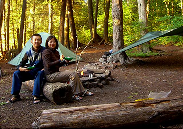 This is the one thing I have always wanted to do - canoe tripping. But three years ago, Jeremy told me that his friend and wife had hardly survived the portage, so I'd given up the idea. I'd read about inflatable canoes last year and thought it might be the solution. But again, I did not follow it through. Then this year, after two short canoe trips at Ragged Falls and Charleston Lake, I gained some confidence. But uncomfortable of making the trip ourselves, I booked a guided trip. Jeremy complained it was expensive and inconvenient. We'd have to drive to Kearney to meet the outfitter, then drive a 20km unpaved road. Jeremy was quite certain it would kill our poor little 1999 VW Golf. And access point #3's wilderness parking lot had many reports of break-ins. I had to cancel the booking with $100 penalty. I spent months doing research online and reading others' trip-logs, and what seemed to be impossible at the beginning now seemed doable. I finally settled with this: 1. Rent everything from Algonquin Outfitters 2. Use access point #9 and 3. Do the easy Rock to Pen Lake route - There's only one short portage and I believed Jeremy could make it. We were really nervous before the trip. How did we prepare ourselves? Jeremy learned canoeing & portaging techniques from "Youtube" and I worked out other details. 1st day: We headed out early at 6AM and stopped by Tim Horton's at Huntsville for a coffee break. We reached Algonquin Outfitters at 10AM. The staff was attending a group of family members and we had to wait an hour. They only had one staff in charge of their outfitting service. He was really friendly and helpful though. He briefed us on our camping & cooking equipment, and arranged our food according to the form we submitted weeks ago. Then we packed them in two huge canoe packs, mounted the 45 lb canoe on our car and headed to the access point. ![]() ![]() It was almost noon when we launched our canoe. It was great weather - warm and sunny. It was a good day to start our adventure. As expected, we were clumsy at the beginning. Jeremy needed some time to practice his "J" and whatever strokes that he'd learned from "Youtube". We read some advice that we should keep to the shore to shield ourselves from strong wind, so we kept close to the west shore at Rock Lake. The water was shallow and I felt safe> In case our canoe capsized, we didn't have to dive too deep to recover the packs. We passed by Picto Bay and we looked around for the Indian pictographs. Not quite sure if that was the one..? We paddled further and realized that we wasted too much time paddling along the bay. We should have paddled across the lake closer to Rose Island. ![]() When we reached the portage to Pen Lake it was 2 hours later. Jeremy wanted to carry the canoe first. He was struggling with portaging. He was obviously in pain. I tried to help but it looked pretty awkward, and it was too h..e..a..v..y.. for me. He thought he could do better without me, and insisted doing it alone. He took 11 minutes to portage 375m. Hmm.. he wasn't proud. ![]() After that we turned back to get our packs. On way back we detoured to the waterfall. Jeremy wasn't impressed and kept urging me to leave. The pack was way too big for tiny me, I thought I sprained my back. It was 3PM when we started on Pen Lake. This time we were wiser not to paddle along the bays. Wind started to pick up. We were against the wind and the water was choppy. We had to paddle furiously. My aqua-phobia kicked in. I was scared (sigh..), tired and desperate. I thought we had paddled quite a distance but why had we not come across the 1st site at the east yet? We read some good reviews on the last few sites on the east shore, but I didn't care anymore. I would just get the 1st site. Then we saw the first site from a distance, but when we approached, we found it was taken . We paddled further down and soon came across the second site. Didn't look good from our canoe. We landed to investigate. It was vacant and in fact it was really a nice site. ![]() The site was surrounded by mature trees. It was well sheltered from the wind and had lots of privacy. We settled down. After setting up the tents, Jeremy started a fire and I started to cook. We had rib-eye steaks for dinner. Yummy! It was cold at night, Jeremy refused to go out of tent to make a campfire, so we retired early. ![]() 2nd day: We woke up at 6AM. I walked to the lake and it was a foggy morning. Gosh, this place was so beautiful. It's heaven on earth. Our breakfast was sumptuous - bacon, fresh eggs, coffee and cranberry juice. The weather forecast predicted rain in the afternoon, so we decided to venture out early. We planned for a day trip to Galipo River. We decided to paddle south down along the east shore and to cross the lake only when we reach the last site. Along the way, we stopped by a few vacant sites and checked them out. We took a snack break at the sixth site. While munching on the snacks, something just looked weird to us. "Is that an island?" I asked Jeremy, pointing at the piece of land across the lake. ![]() Well, we expected to see an island across from the last site, not from the sixth. We checked our map and started getting suspicious. As we paddled south, it hit us that we were approaching Clydegale Lake portage. Ahh.. now then we realized that we had been mistaken that our site was the second one. It was in fact the fourth site. We missed the 1st and 2nd yesterday. No wonder it took us forever to reach "1st site".. Aren't we dummies with maps? This was again proved as we took a really long time to locate the entry point to Galipo River. The water was so very shallow, that at some point we couldn't paddle at all. We had to stick the paddle into the sandy bottom and use it to push the canoe forward. We reached the portage a few minutes later. We had no intention to proceed further, just wanted to spend some time there. We hiked to the waterfall. It was late September and the leaves had s