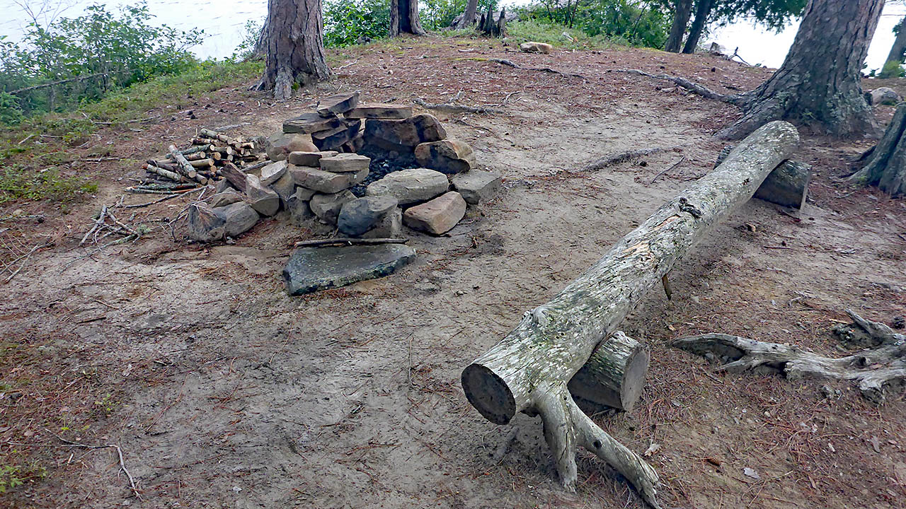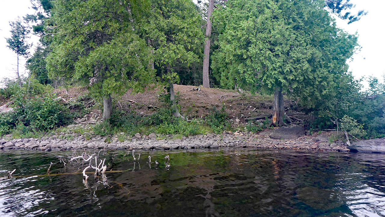 Landing Topography of under-water approach: Shallow water, small rock and gravel. Impediments to disembarking from and/or unloading a canoe: None. Topography leading to tent sites: 5 meter path to site with a somewhat steep climb, approx. 3m elevation.