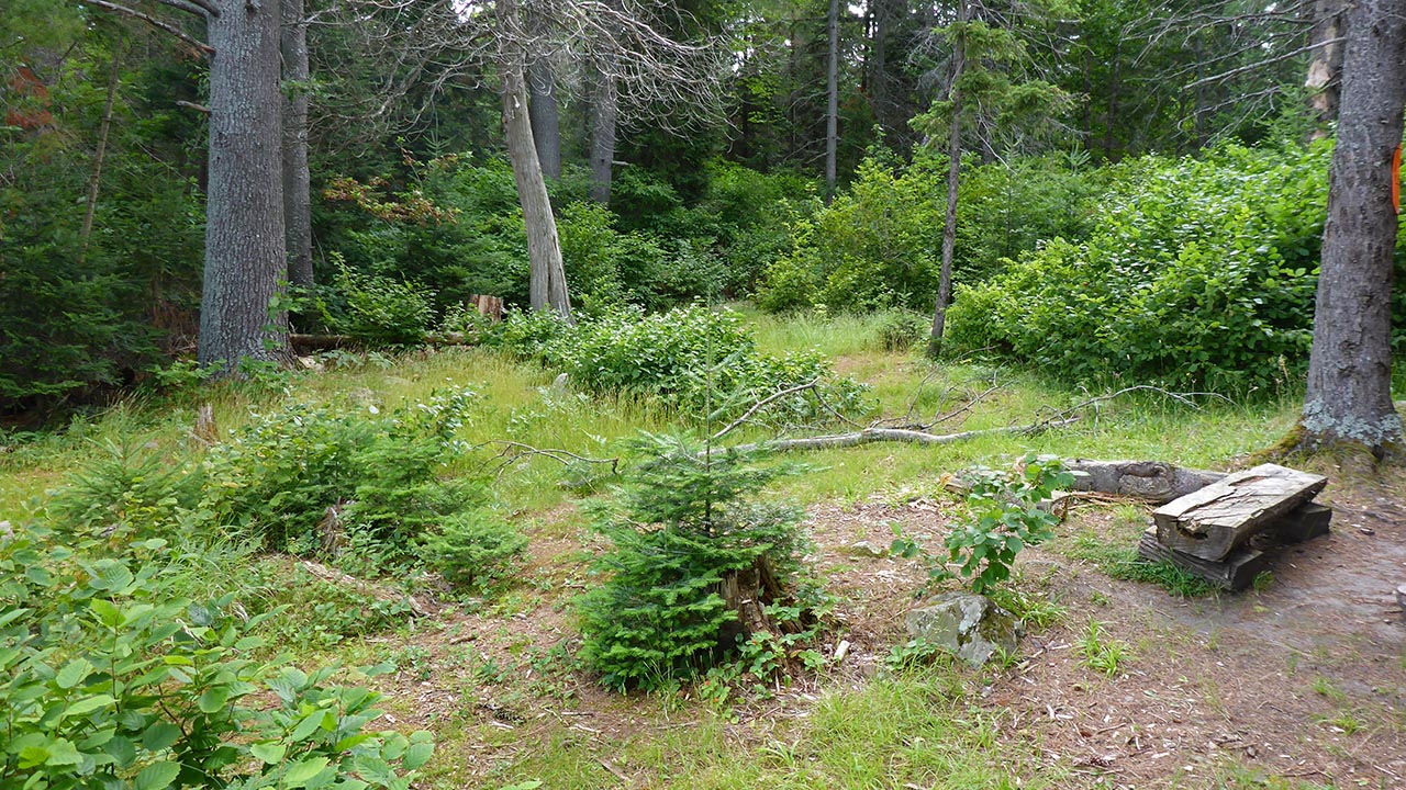 Campsite Regular or low-maintenance: Regular Size of open ground area: 20m x 7m. Extent of tree cover: 10%. Degree of levelness: Level. Number of tent sites: 3 or more tents. North exposure: View of lake. East exposure: Trees. South exposure: Trees. West exposure: Trees and view of lake.