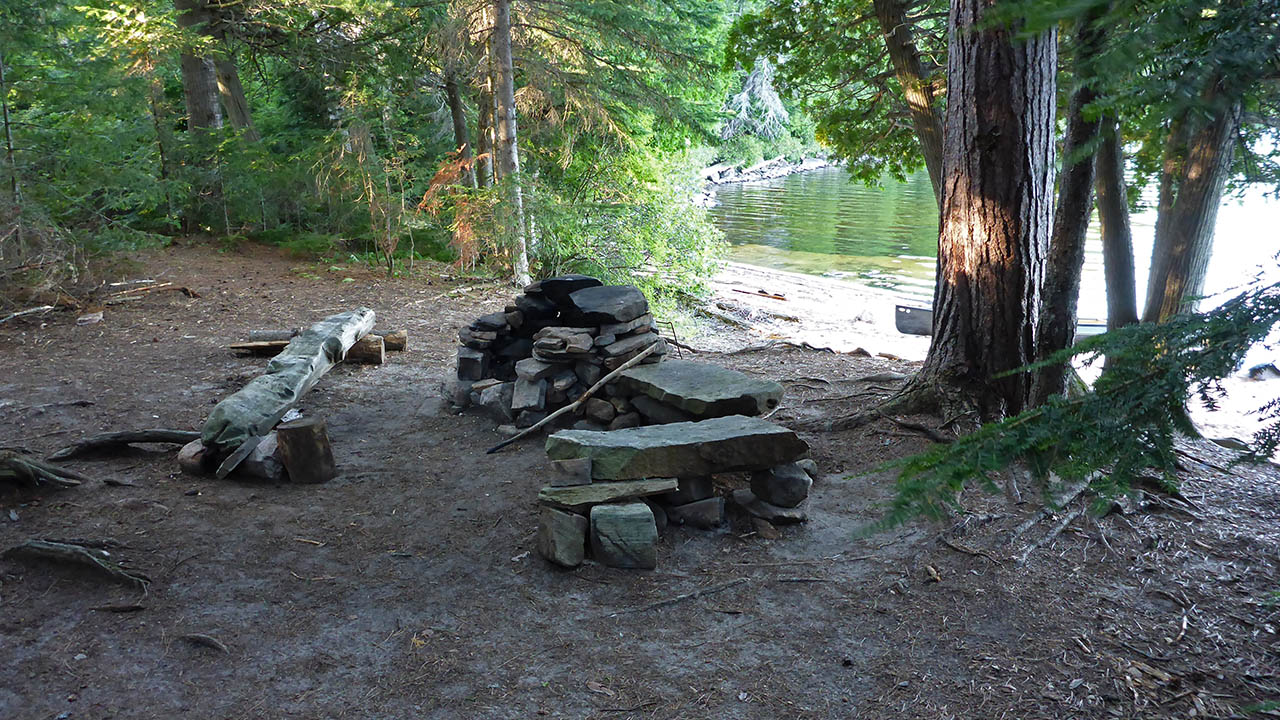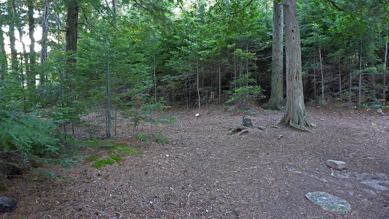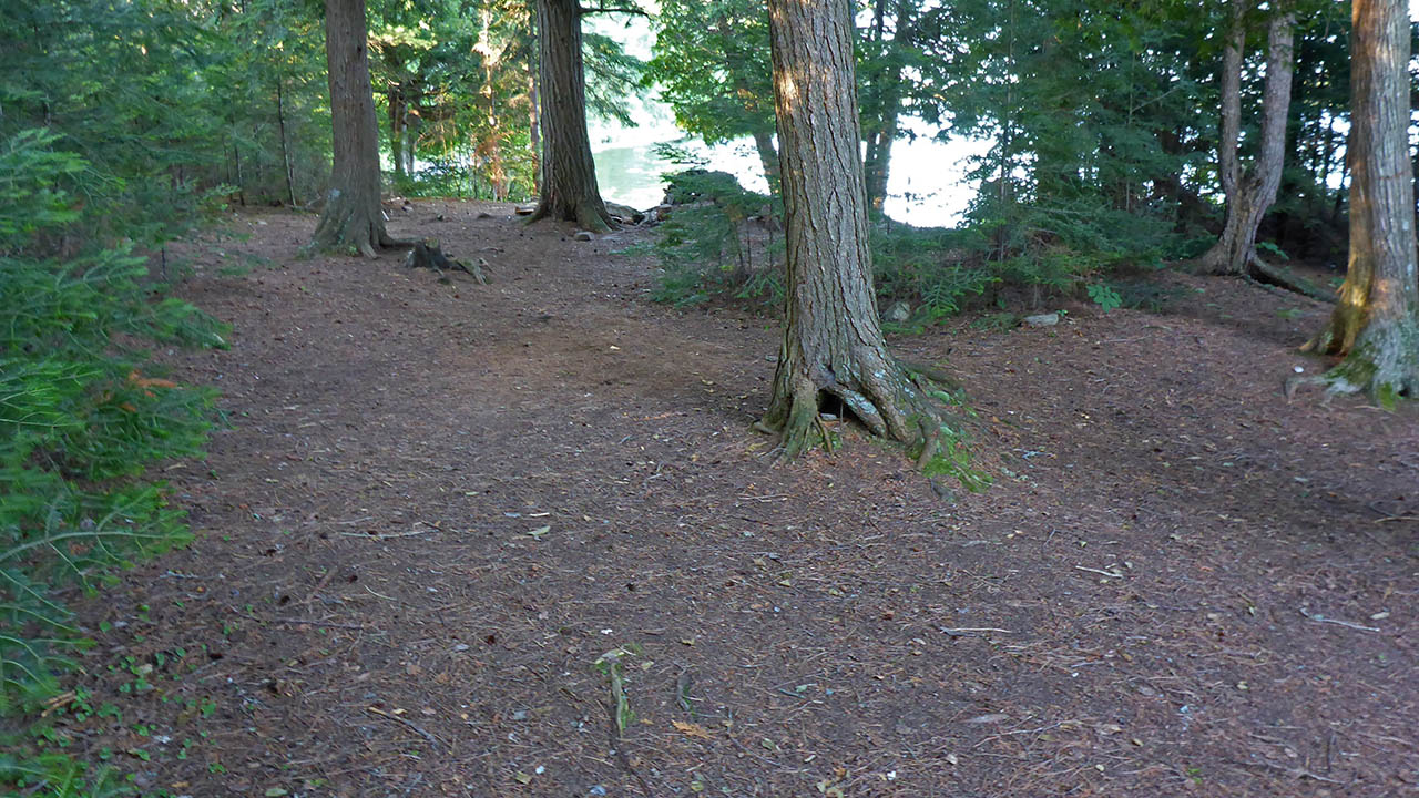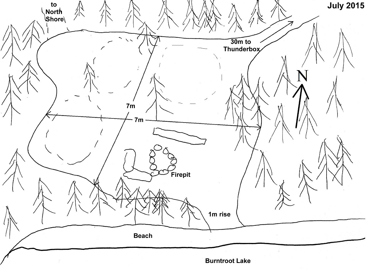 Campsite Regular or low-maintenance: Regular Size of open ground area: 7m x 7m. Extent of tree cover: 95%. Degree of levelness: Fairly flat site that slopes slightly to lake. Number of tent sites: 3 tent sites. North exposure: Trees. East exposure: Trees. South exposure: View of lake. West exposure: Trees.