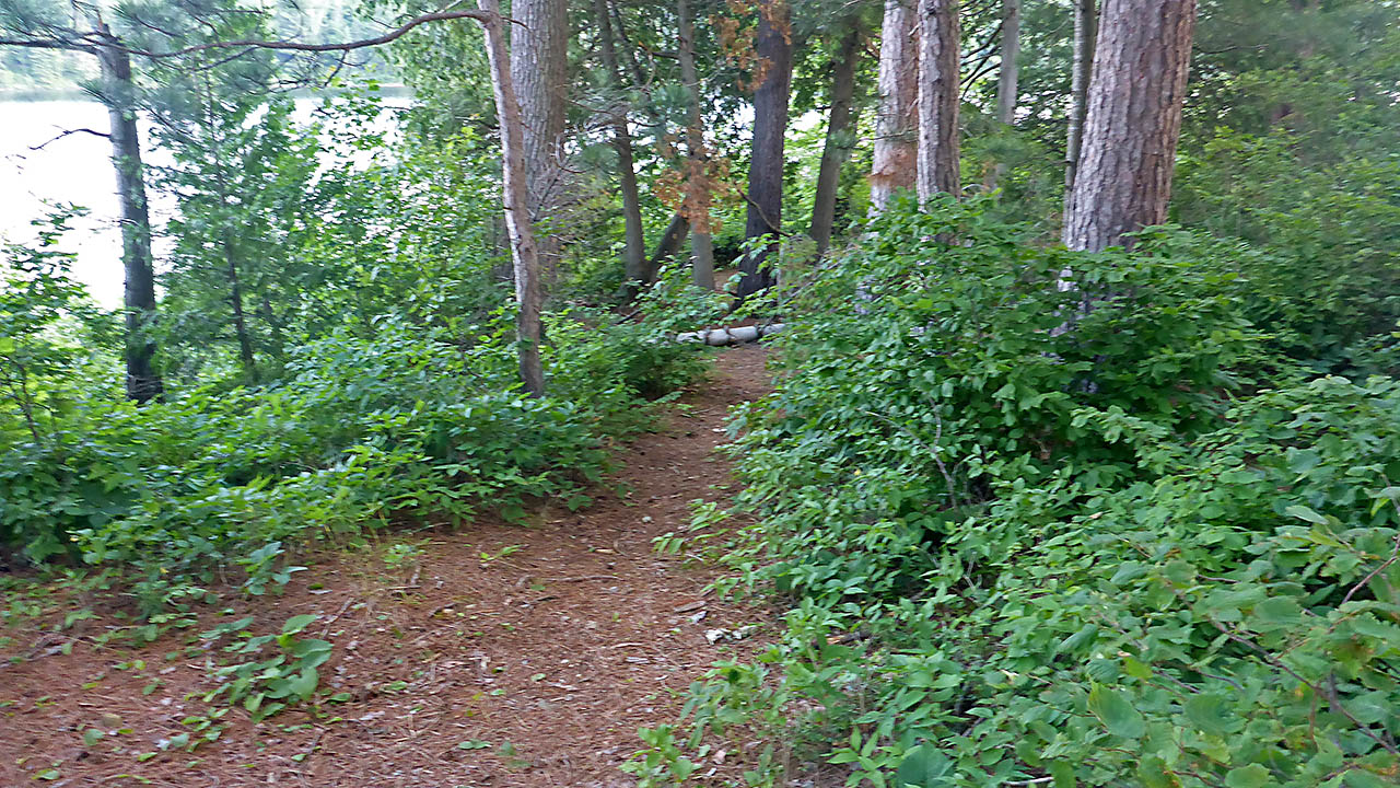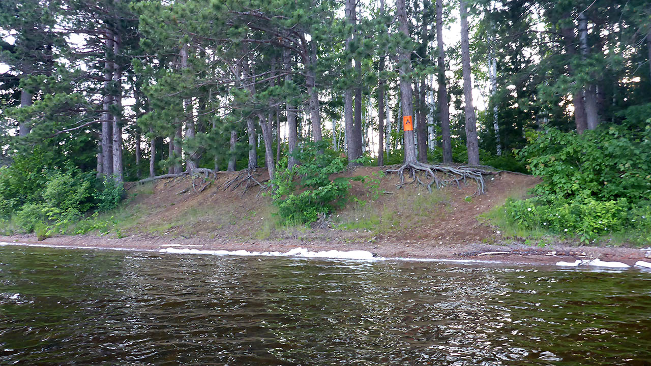 Landing Topography of under-water approach: Gravel beach. Impediments to disembarking from and/or unloading a canoe: None. Landing can be made anywhere along front of campsite. However, haulage to the site can only be done at the south side of the landing, or at a smaller landing area at the north of beach. Topography to tent sites: A steep rise of approx. 2 meters.