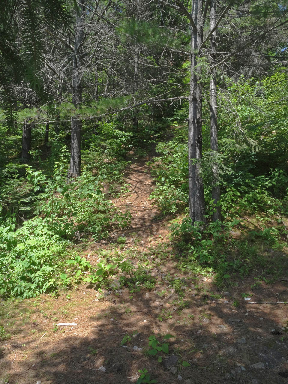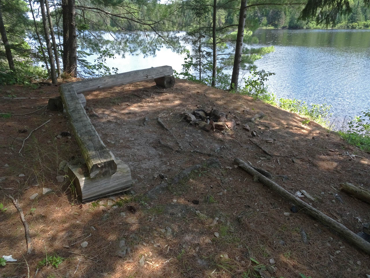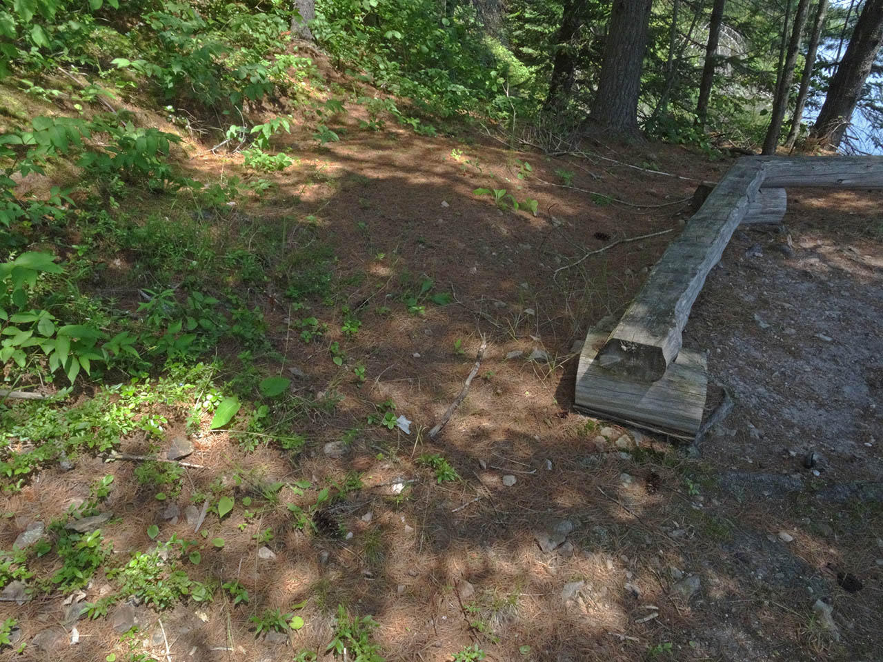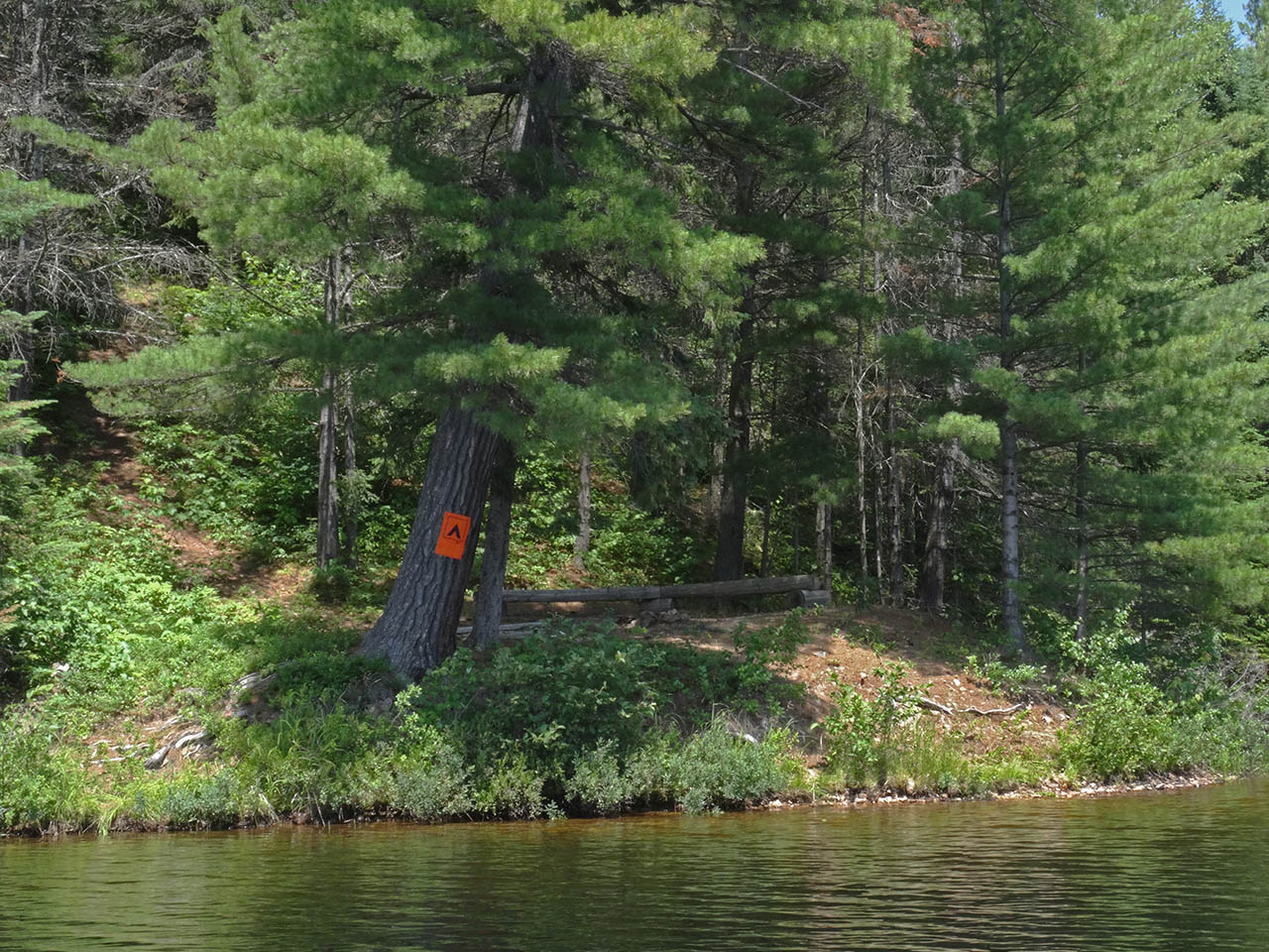 Landing Topography of under-water approach: Slope underwater is a continuation of the steep hillside out of the water. The eroded shoreline provides a very narrow less-sloped strip to step out into for unloading. Impediments to disembarking from and/or unloading a canoe: Slope requires careful footwork and handling of packs . Topography to tent sites: Steep slope up tp campsite. The hillside's slope is almost 45 degrees and continues down into the water ... Campsite maintenance: regular. Size of open area: 15 x 25''. Extent of tree cover: 50%. Degree of levelness: small level area is cut into hillside. Number of level tent sites: One immediately behind the firepit area and a small rocky level area which could serve as an emergency second one. North exposure: Protected from north wind by hillside and forest . East exposure: Protected from some of the eastern wind. South exposure: Open to the south wind. West exposure: Protected from some of the western wind. The firepit is on a small shelf constructed out of the hillside ... One small tentsite is located immediately behind the firepit benches... A small flat area, located by the thunderbox trail, is very rocky .. a possible emergency second tentsite ... General description: This campsite has been cut out of the hillside's slope .. which prevails in the grade up to the tentsite and the trail up to the thunder-box. Overall accessibility: Not very accessible at all. The landing and grade to-and-from the campsite are almost 45 degrees. The upper hillside has some loose fist-sized and smaller sharp-edged rocks which could make the climb to-and-from the thunderbox potentially hazardous. The trail to the thunderbox becomes steep with some loose sharp rocks underfoot ... ![]() Thanks to Jeffrey McMurtrie of Jeff'sMap for supplying the base-layer map component by Creative Commons licensing. Submitted by Barry Bridgeford .. Visited July, 2015 .. Submission August 23, 2015 |