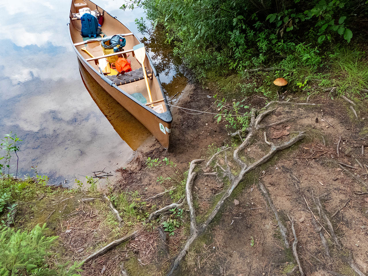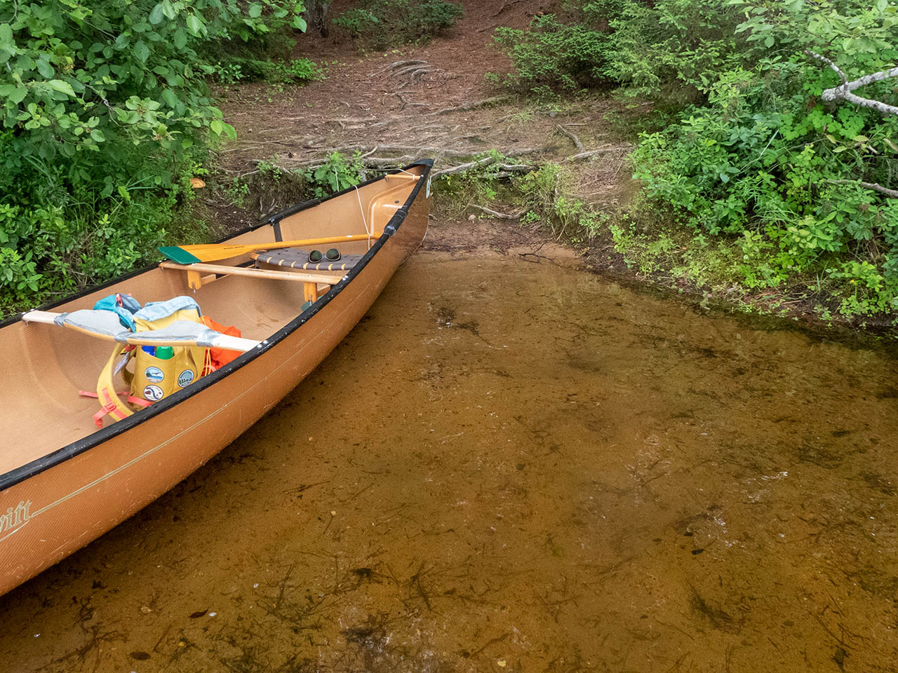 Landing Topography of under-water approach: Gentle sand slope. Impediments to disembarking from and/or unloading a canoe: None. Topography to tent sites: Moderate dirt and root rise.