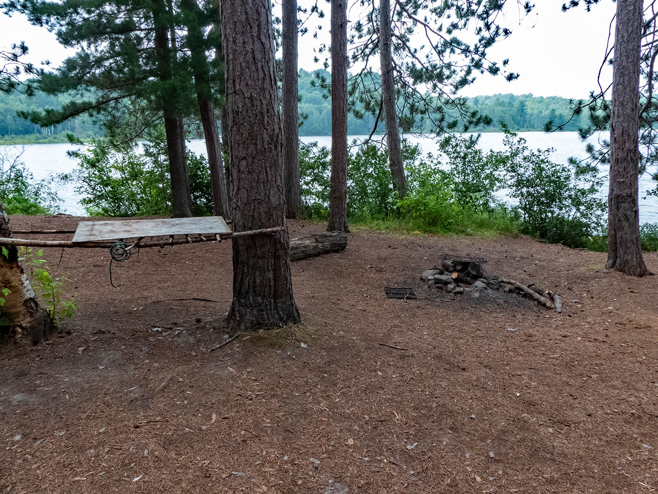 Campsite Campsite maintenance: Regular. Size of open area: Campsite is spacious under the open canopy of pine trees, approximately 25' x 60'. Extent of tree cover: Pine canopy over majority, but open understory is breezy. Degree of levelness: Actual campsite is level. Number of level tent sites: 4 good sized tent sites. North exposure: Trees. East exposure: Trees. South exposure: Trees. West exposure: Trees and shrubs break the view of the lake. General description: One of five campsites that were originally the shoreline part of an old drive-in campground. This campsite more-or-less runs into the adjacent campsites. Overall accessibility: After the slope up from the landing, the campsite is level. ![]() Thanks to Jeffrey McMurtrie of Jeff'sMap for supplying the base-layer map component by Creative Commons licensing. Submitted by Barry Bridgeford .. Visited July, 2023 .. Submission Autumn, 2023 |
