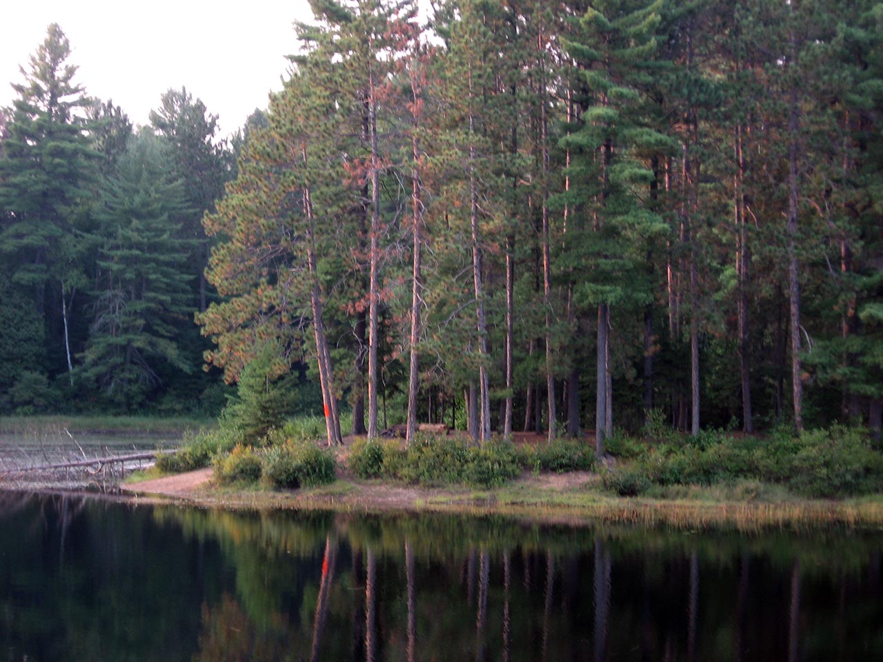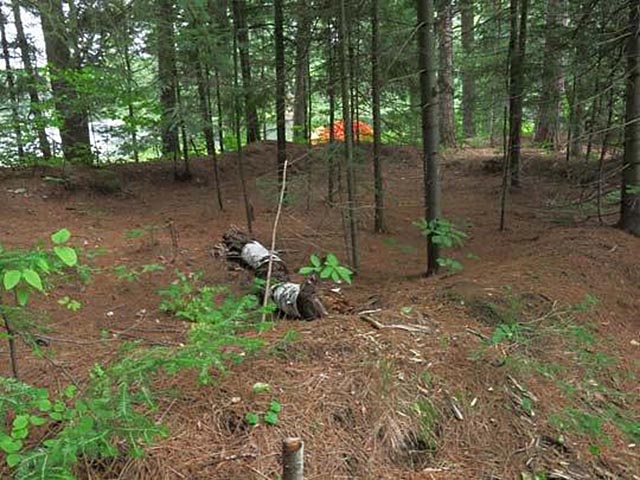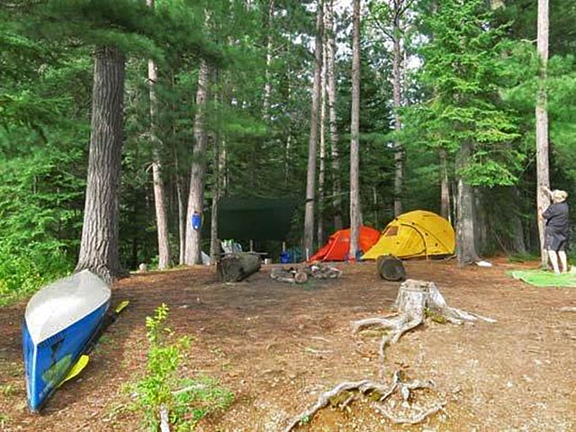 Landing Topography of under-water approach: Gravel. Impediments to disembarking from and/or unloading a canoe: None. Topography to tent sites: Grade of a few feet up to campsite. Campsite and landing viewed from campsite #5 across the water ... Campsite Campsite maintenance: Regular Size of open area: Approx. 10' x 3' . Extent of tree cover: approx. 75% canopy. Degree of levelness: Level. Number of level tent sites: 3. North exposure: Shrubs and dead-end bay. East exposure: Forest. South exposure: Open to river. West exposure: River and open to campsite #5. Looking into the campsite from the landing ... Remnant mounds of the walls of an old cabin, looking west toward the campsite ... General Remarks: There's the site of an old cabin east of the campsite. Overall accessibility: Easy. ![]() Thanks to Jeffrey McMurtrie of Jeff'sMap for supplying the base-layer map component by Creative Commons licensing. Submitted by Wanda Spruyt .. Visited 2017 .. Submission October 6th, 2017 |