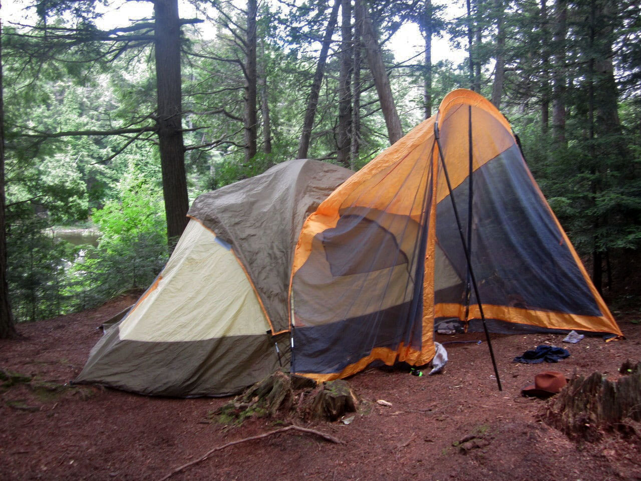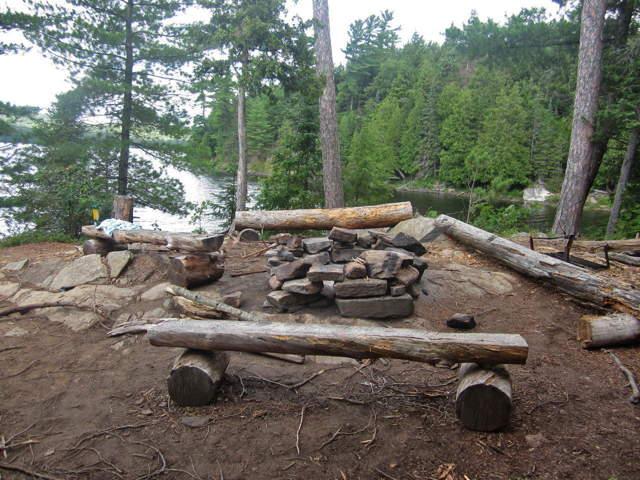 Campsite Campsite maintenance: Regular. Size of open ground area: The neck of the peninsula is open ground and comprises the campsite, approximately 15x25 ft. Extent of tree cover: Tree coverage is behind the peninsula, but not much on the actual peninsula itself Degree of levelness: Flat. Number of level tent-sites: At least 1 large (8 person) tent-site in the open area. North exposure: Beyond a few trees, the campsite is open to the north. However, the whole peninsula is within a bay so it’s relatively protected from an otherwise windy Head Lake. East exposure: Forest behind campsite protects from eastern winds. South exposure: Exposed, but close enough to southern shoreline that campsite is protected from southern winds. West exposure: Very open, and like it’s north exposure, the whole peninsula is within a bay so it’s relatively protected.