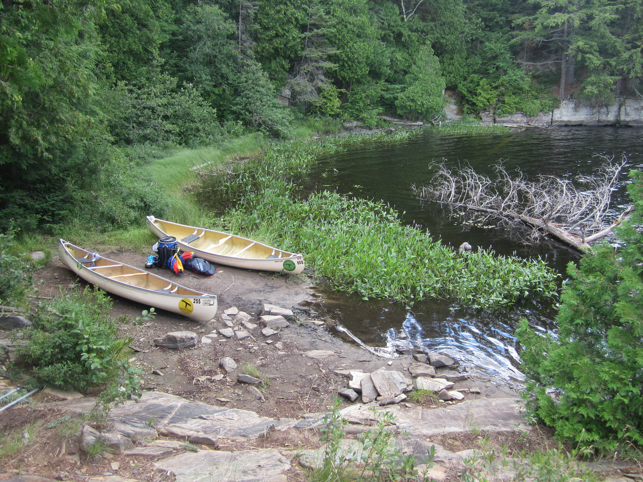 Landing Topography of under-water approach: Blown over trees and shallow sandy/muddy waters can make the approach a bit tricky. Landing is on south side of peninsula. Impediments to disembarking from and/or unloading a canoe: Once you make it to the landing, disembarking is easy. Large, flat beach area. Topography leading to tent sites: Campsite sits on top of a hill, approx. 12 feet high. It's a bit of a climb up from the landing.