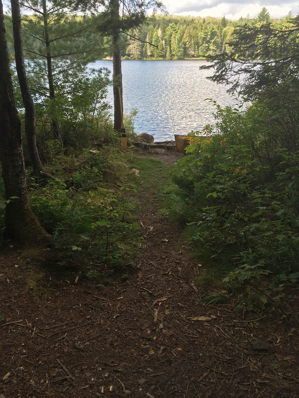 Landing Topography of under-water approach: Lots of rocks underwater to maneuver around. Difficult to pull in without hitting an underwater rock and/or scraping your boat. Impediments to disembarking from and/or unloading a canoe: Rocks make unloading difficult. It’s much easier if you’re willing to get wet but if you’d like to avoid that, you may need to do some acrobatic boat disembarking. Topography leading to tent sites: Slightly sloped tail to main site. Landing area .. you can see some of the underwater rocks that make landing so difficult. ... Trail from landing area to site ... Campsite Regular or low-maintenance: Regular Size of open ground area: Moderately sized campsite closed-in on nearly all sides by dense forest. Extent of tree cover: 100% This site is set back from the lake and very treed. Degree of levelness: Quite level on the main portion of the site. Number of tent sites: Good area for one large tent and could easily find 2 other spots for smaller tents although you may be on a slide slope and dodging tree roots. Number of tent sites: 2 flat sites available for small tents. More could be found with some effort but roots would be a problem. North exposure: Protected by forest. East exposure: Protected by forest. South exposure: Protected by forest. West exposure: View of lake through the trees. Main part of site .. the large tent area to the right ... Cool, giant burl on tree at back of site ... General description: This site isn’t anything to write home about. Access to the water is challenging and there are no great swimming areas. The site feels closed in by the tree cover. Overall accessibility: Loading and unloading gear would be challenging without getting your feet wet. ![]() Thanks to Jeffrey McMurtrie of Jeff'sMap for supplying the base-layer map component by Creative Commons licensing. Submitted by Submitted by: Claire Cowan .. Visited September 6th, 2015 .. Submission September 8th, 2015 |
