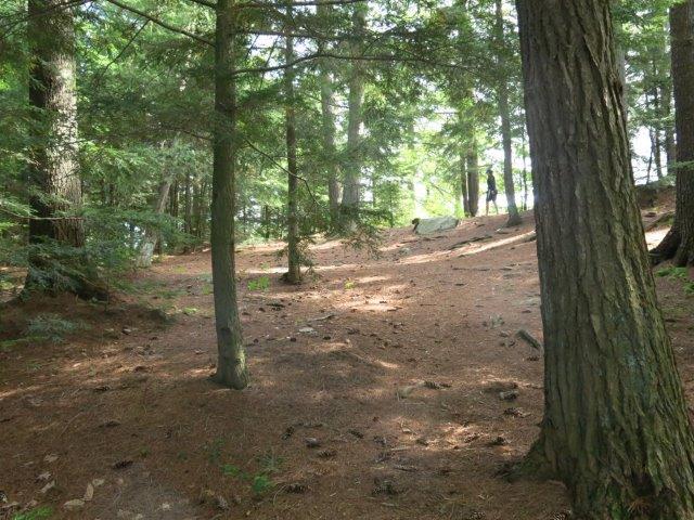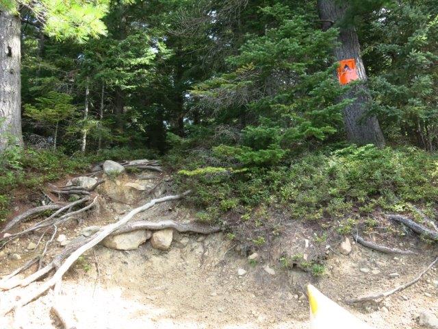 Landing Topography of under-water approach: Sand and gravel. Impediments to disembarking from and/or unloading a canoe: Steep access. Topography leading to tent sites: Long steep grade. Landing ... Rocks and roots on the steep rise toward the wooded slope ... Up-hill to the actual campsite ... Campsite Regular or low-maintenance: Regular Size of open ground area: 20 x 20 feet. Extent of tree cover: 90%. Degree of levelness: Not level. Number of tent sites: 1. North exposure: Lake through trees. East exposure: Lake. South exposure: Lake & trees. West exposure: Lake through trees.. General description: Easy landing but steep access. The island is one large hill with a small tentsite on top. The rest of the site is open at ground level, but too sloped to pitch a tent. The landing area looks directly towards portage to Phipps Lake. Overall accessibility: Moderately hard. Firepit ... Small flat area at the top ... ![]() Thanks to Jeffrey McMurtrie of Jeff'sMap for the base-layer map component by Creative Commons licensing. Submitted by: Wanda Spruyt .. Visited September, 2018 .. Submission December 15, 2018 |