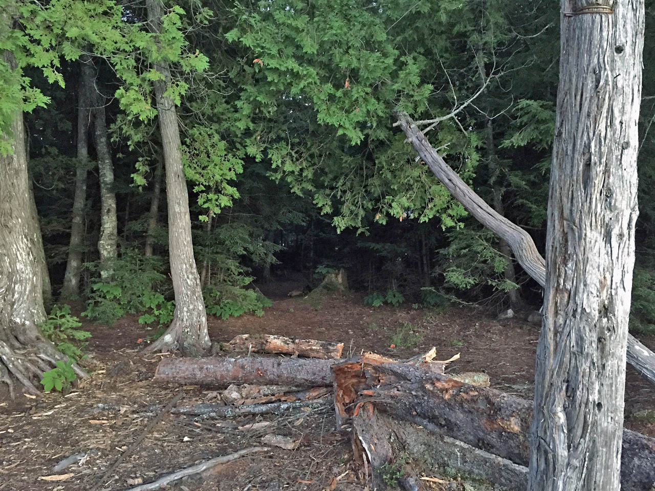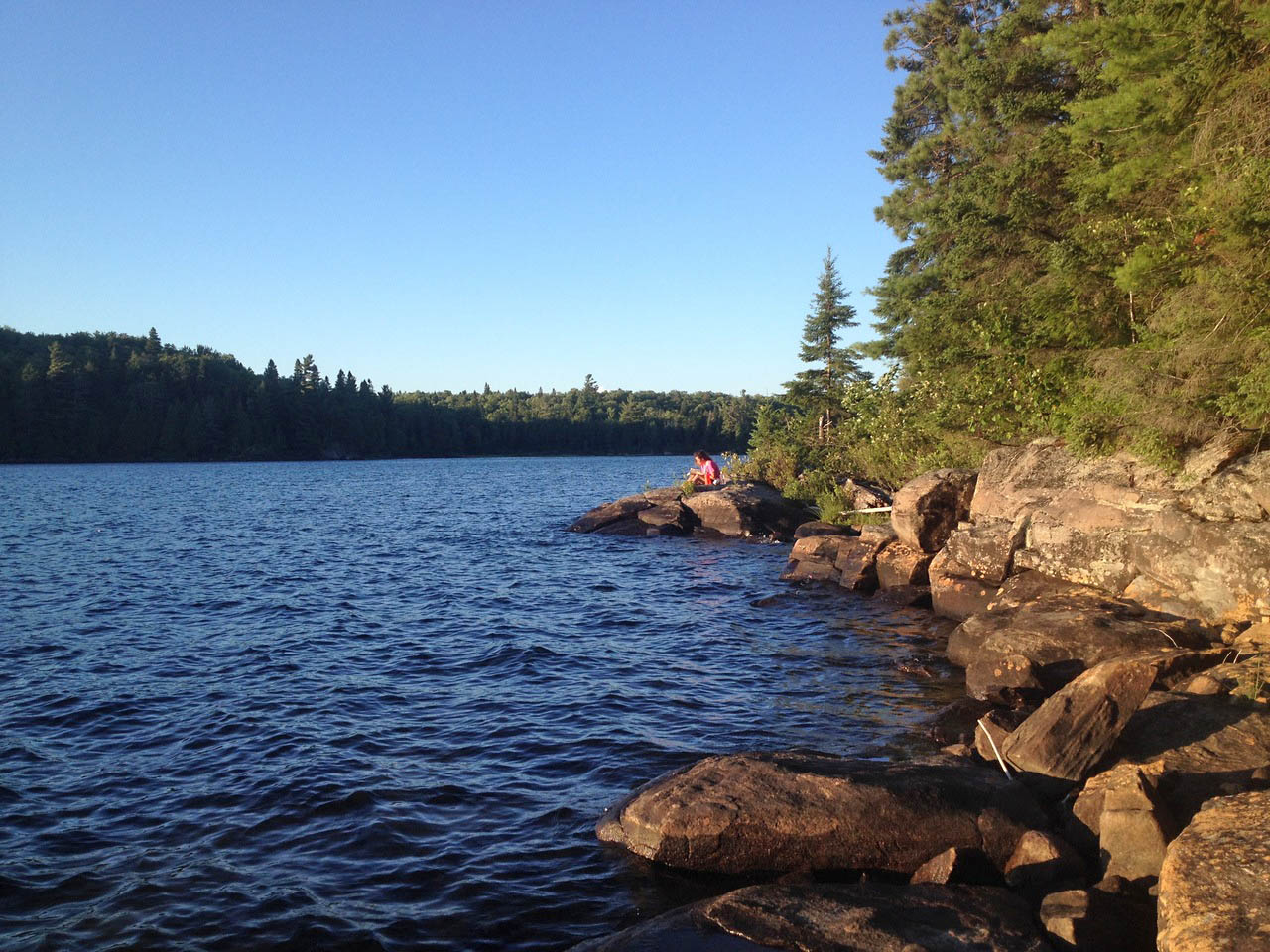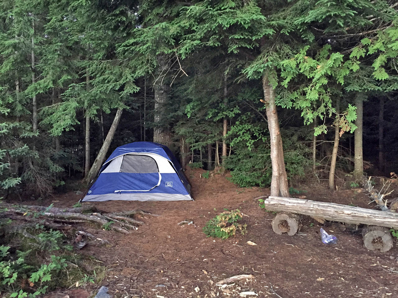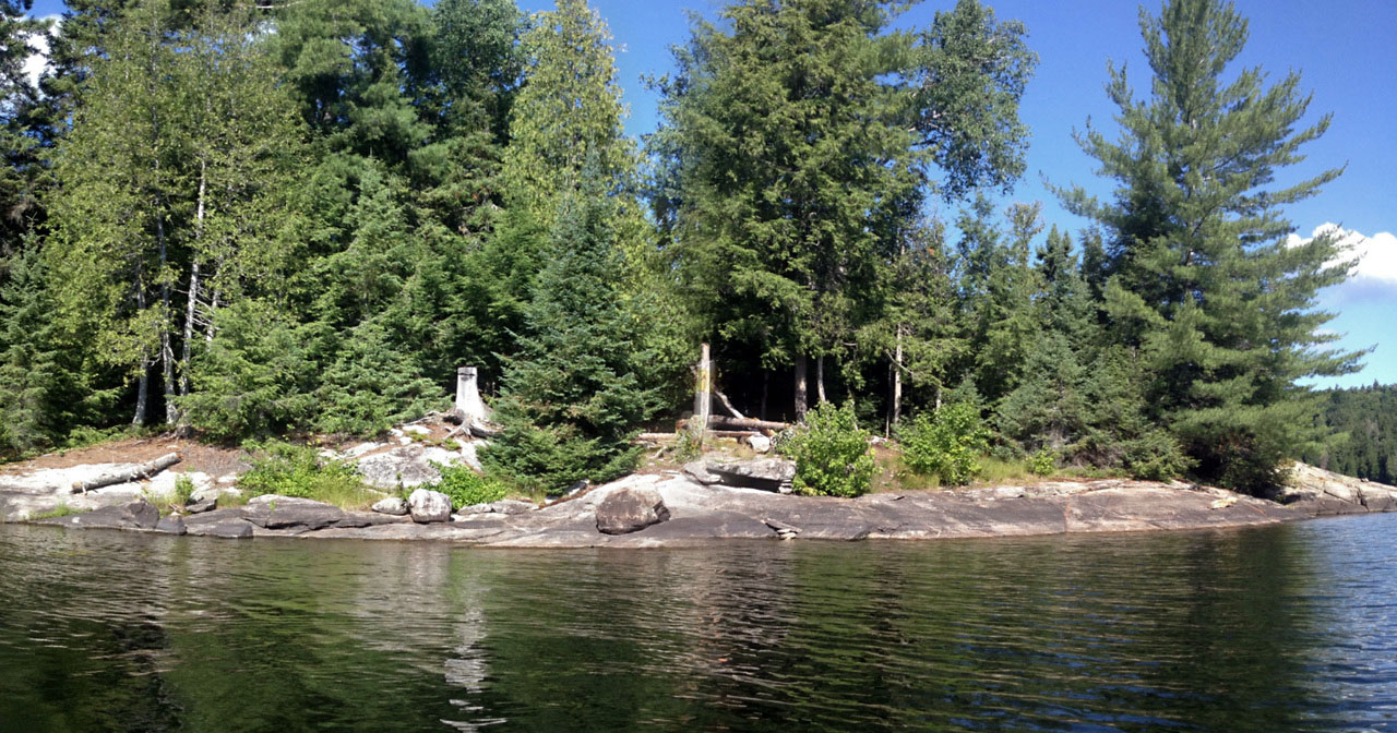 Landing Topography of under-water approach: Sloped rocks. Impediments to disembarking from and/or unloading a canoe: Sloped rocks, but there are spaces to pull in and unloading isn’t as difficult as it seems if you pull up sideways. Topography to tent sites: Minor incline from landing to campsite.