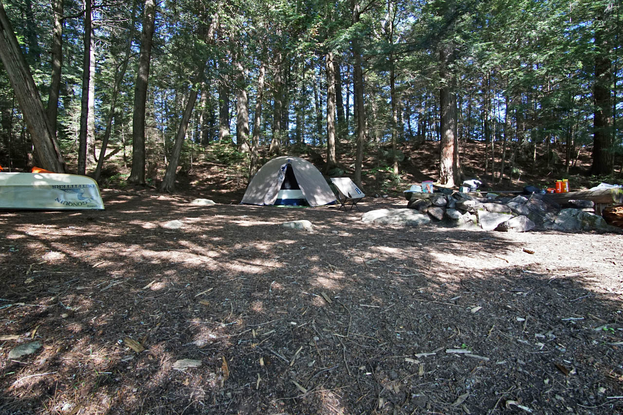 General description: The campsite is a short distance away from a small island. The lapping of waves against it was very audible at night. I found it peaceful, but it kept my spouse up at night. The campsite was not that good for swimming. The area around the canoe landing is quite shallow with dead trees and large rocks in it. We were unable to find any great options for a tree to hang food from, so some creativity might be required. Overall accessibility: "B". ![]() Thanks to Jeffrey McMurtrie of Jeff'sMap for supplying the base-layer map component by Creative Commons licensing. Submission August 16, 2020 by Andrew M. ... visited August 5 - 7, 2020 |