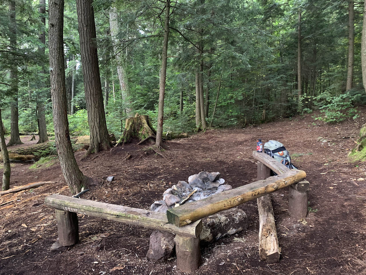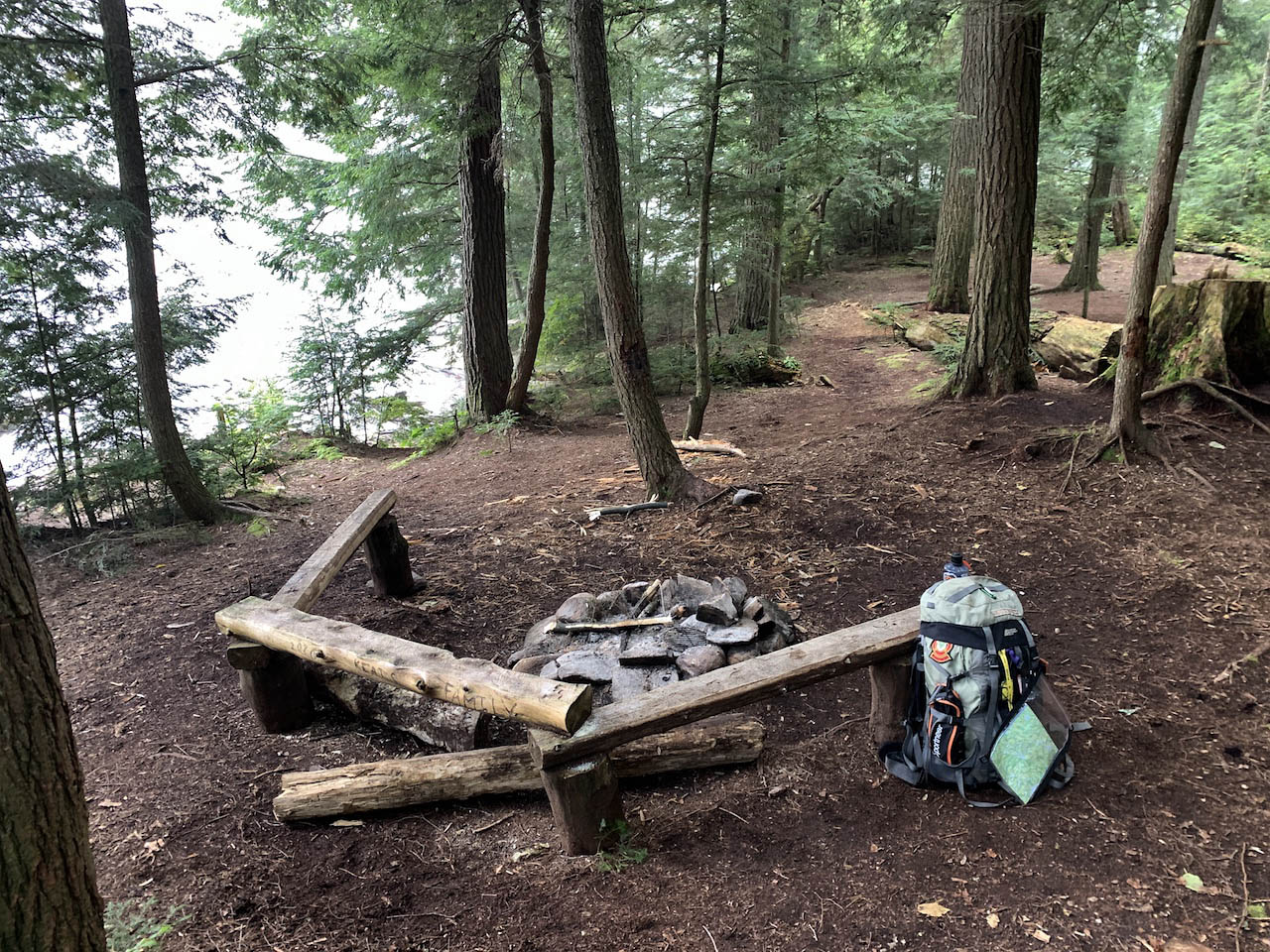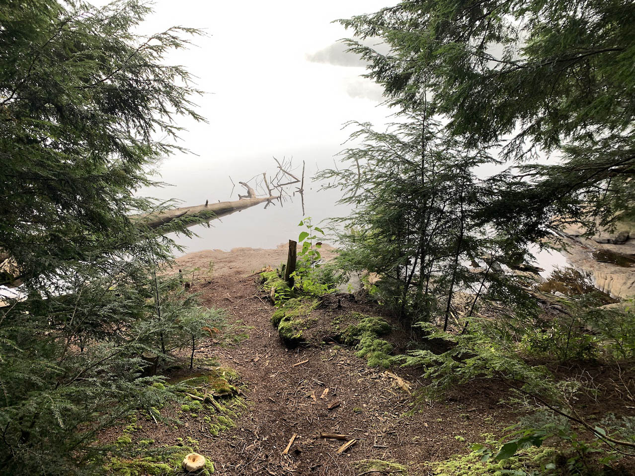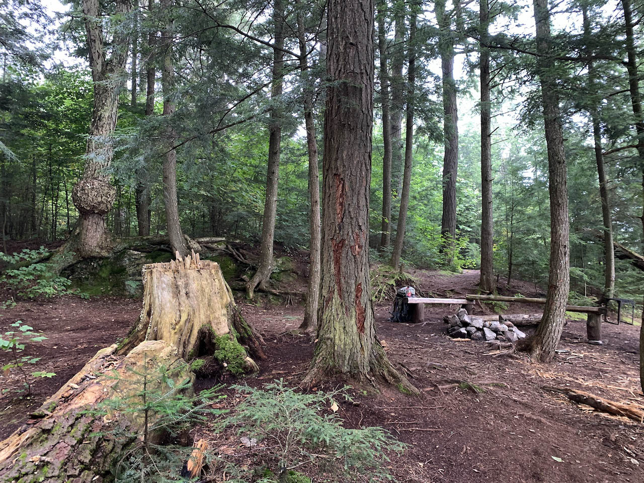Campsite Campsite #T11 is on a side trail, roughly 600m from the main trail.. It has lots of space. It would suit a big group. There are two excellent tentsites. Looking northwest across the campsite ... Looking south across the campsite, to tentsites in the distance ... Looking west across the firepit, to another tentsite close by ... Campsite maintenance: regular The swimming is not great here. You would need to wade out through deadfalls and muck quite a distance to get deep enough to actually swim. The thunderbox is located right on the side trail that leads to campsite #12. The campsite has an eastern exposure to the lake and is a great spot for the morning sun. Access to the lake is obstructed by deadfalls ...