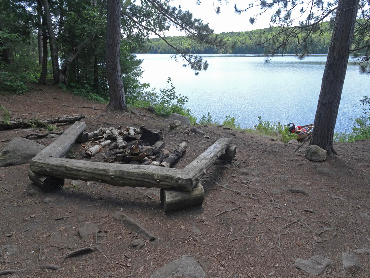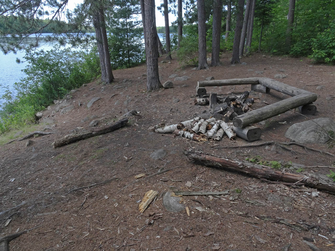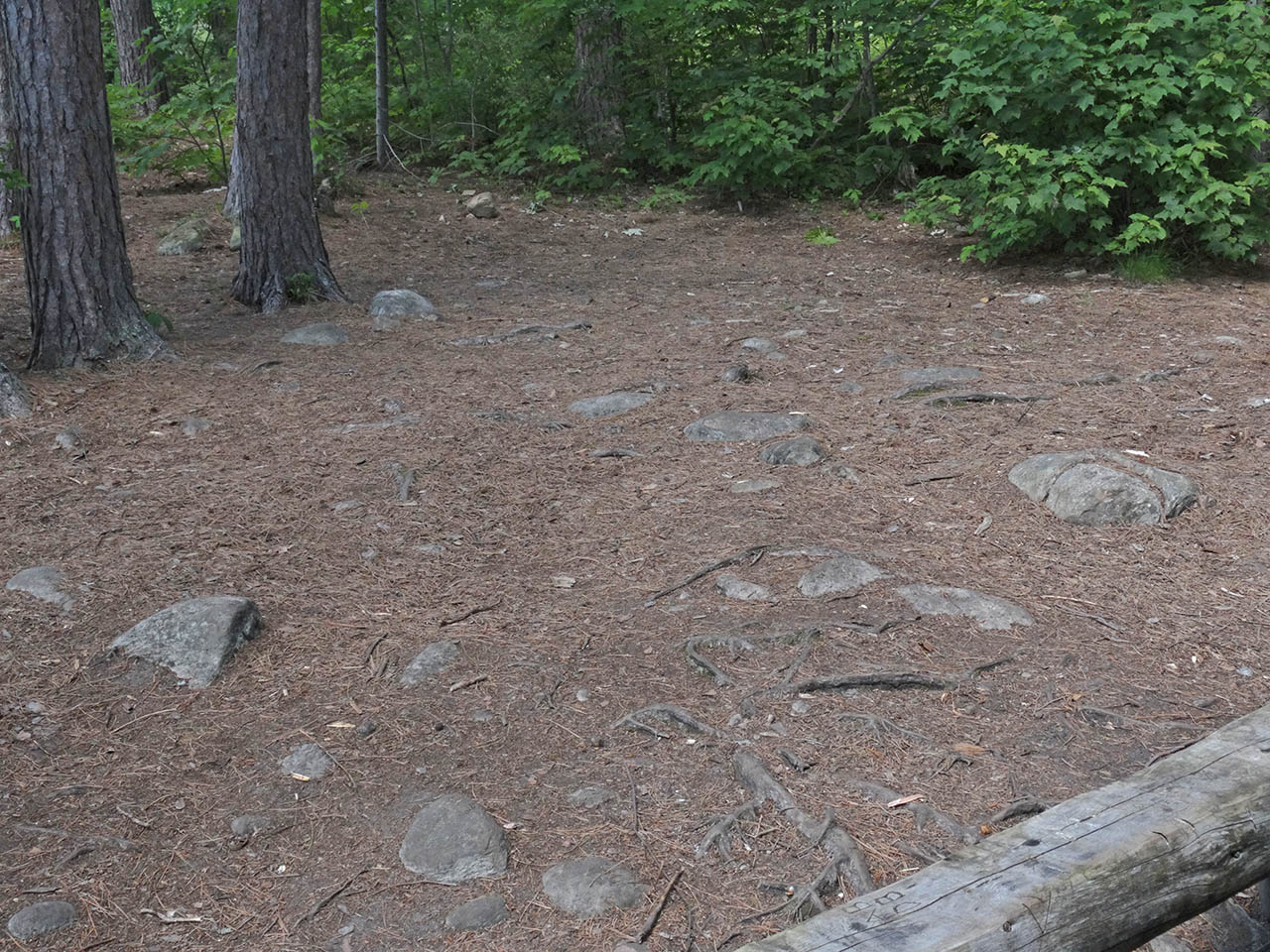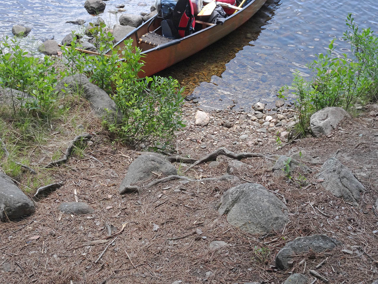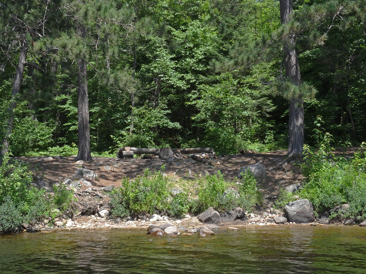 Landing Topography of under-water approach: Gradual, shallow sloping gravel with small and medium rocks. Impediments to disembarking from and/or unloading a canoe: None - no obstructions at the landing. Topography to tent sites: 10 foot moderate rise with some rocks and roots. From the water, the entire campsite is visible ... Necessary to step into water to unload ... Looking southeast across the firepit. Trail at far left eventually gets to campsite #3 ... Westmost tentsite is set back close to the vegetation ... Second tentsite is close to the firepit. ... Third tentsite is nestled into the vegetation ... Looking southwest across the firepit ... Campsite maintenance: regular. Size of open area: 80' x 25'. Extent of tree cover: two thirds canopied. Degree of levelness 80% flat terrain within open area. Number of level tent sites: Three medium-sized tents. North exposure: Well protected from north wind. East exposure: Protected from much of the eastern wind by forest. South exposure: Open to the south wind and mid-day sun. West exposure: Protected from much of the western wind by forest. General description: Decent size, flat and open. However, it has very limited view of sunrise and sunset. Not being on a point could mean buggy unless the wind is very strong. Overall accessibility: Generally good accessibility, aside from short rocky rise from the water. ![]() Thanks to Jeffrey McMurtrie of Jeff'sMap for supplying the base-layer map component by Creative Commons licensing. Submitted by Barry Bridgeford .. Visited July, 2015 .. Submission August 22, 2015 |