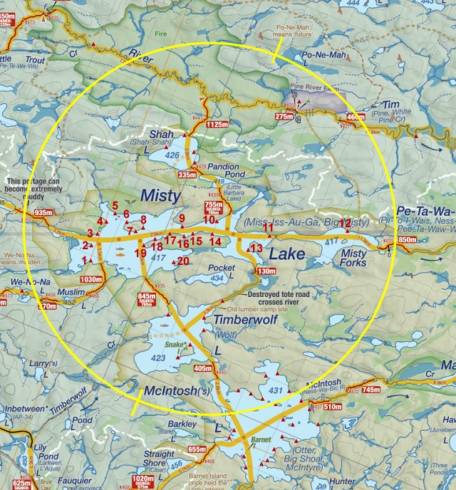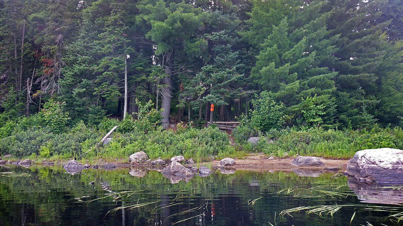 Landing Topography of under-water approach: Shallow water, sand and gravel. Impediments to disembarking from and/or unloading a canoe: None. Topography to tent sites: A 5m trail with a 1.5m rise to site.