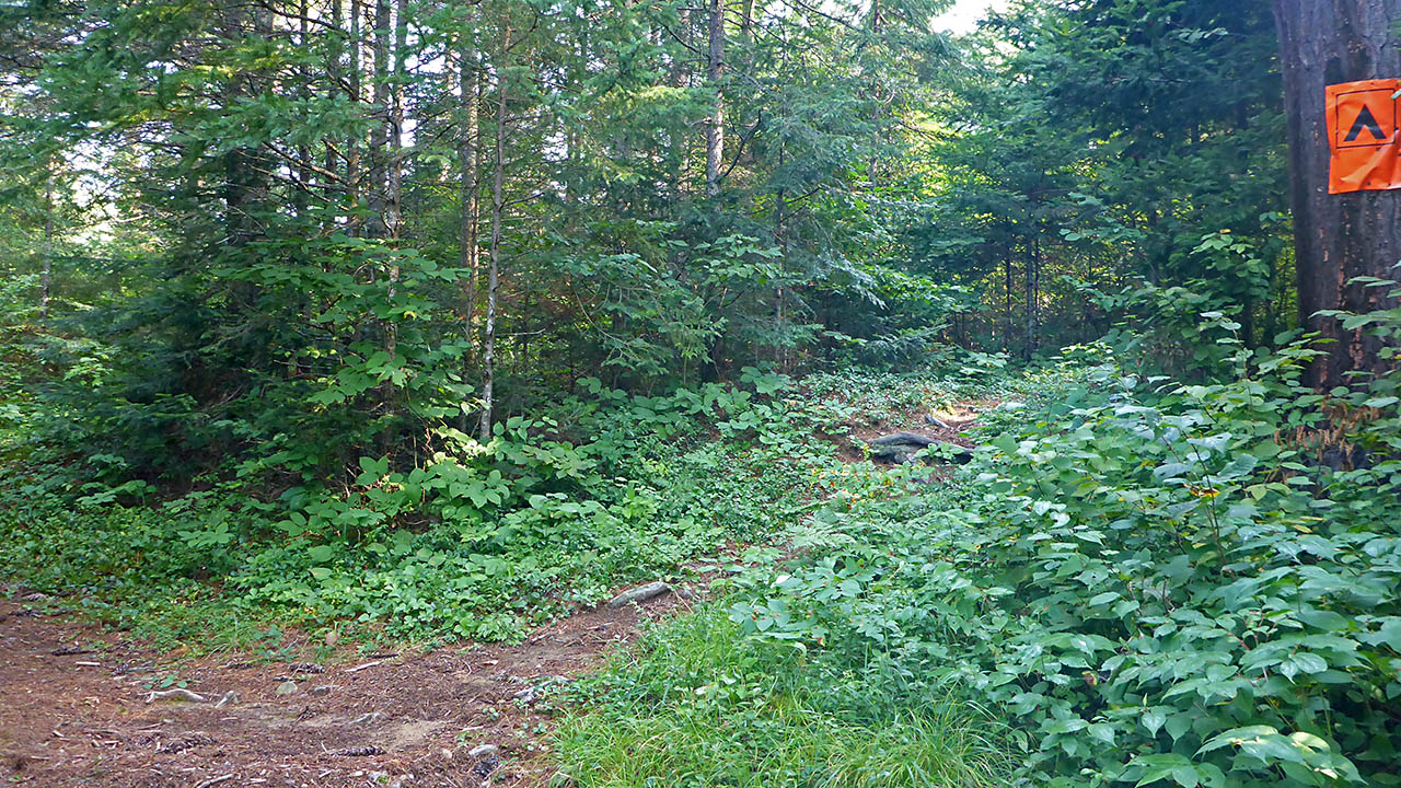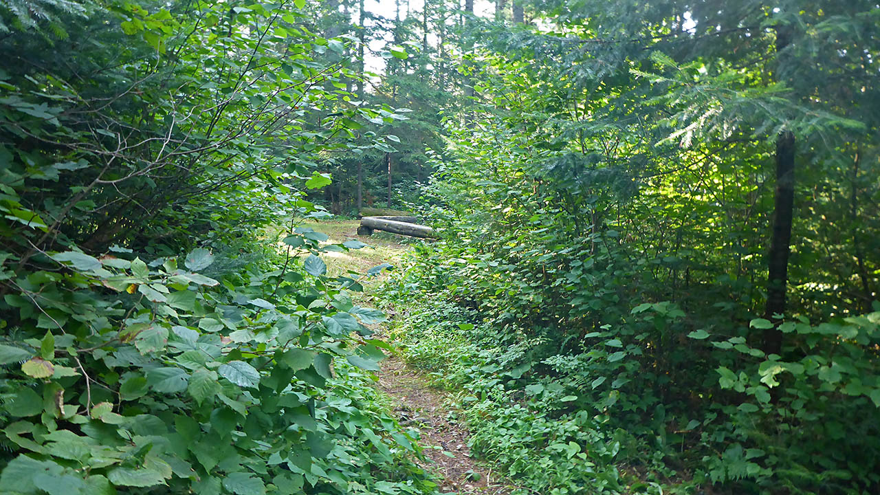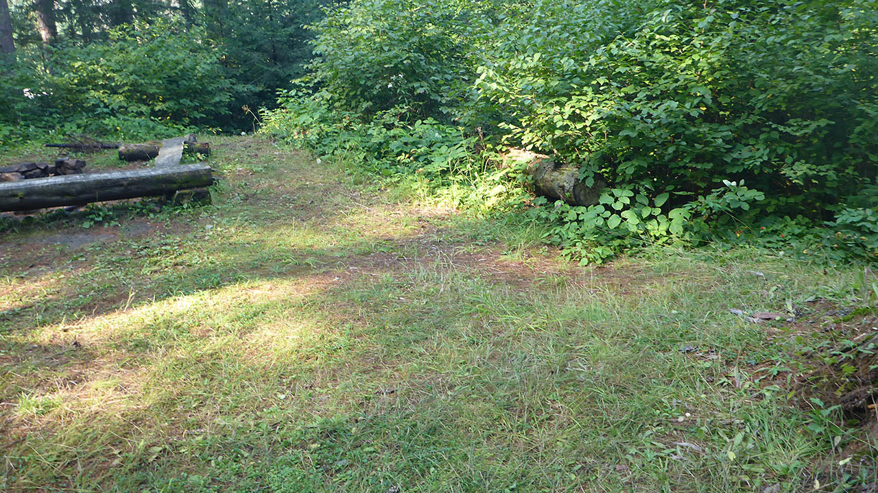 Extent of tree cover: 0%, all tree cover is on the perimeter. Degree of levelness: Level. Number of tent sites: 3+. North exposure: Trees. East exposure: Trees. South exposure: Trees. West exposure: Trees. General description: Located on the Rolling Dam portage trail, but is off of the beaten path by way of 2 small paths leading from the main trail. A smallish, but flat and open site, that has a nice firepit with good seating. Overall accessibility: Campsite is accessed from portage trail that is well travelled. Looking from north path at west side of site ... Plumb Creek Junction Reservation Area (#519) ... Submitted by Chris Taylor, January 12, 2019 .. visited August, 2018. |