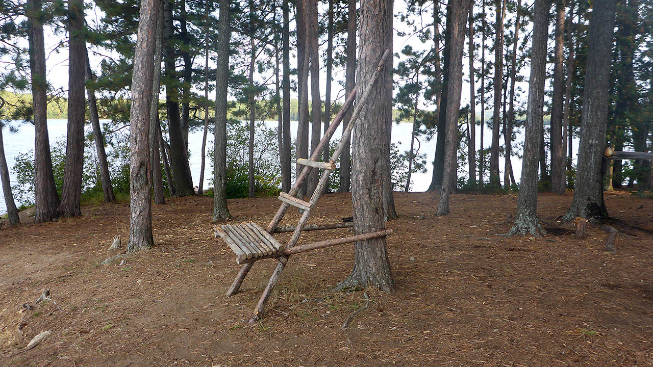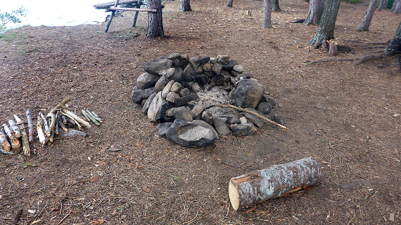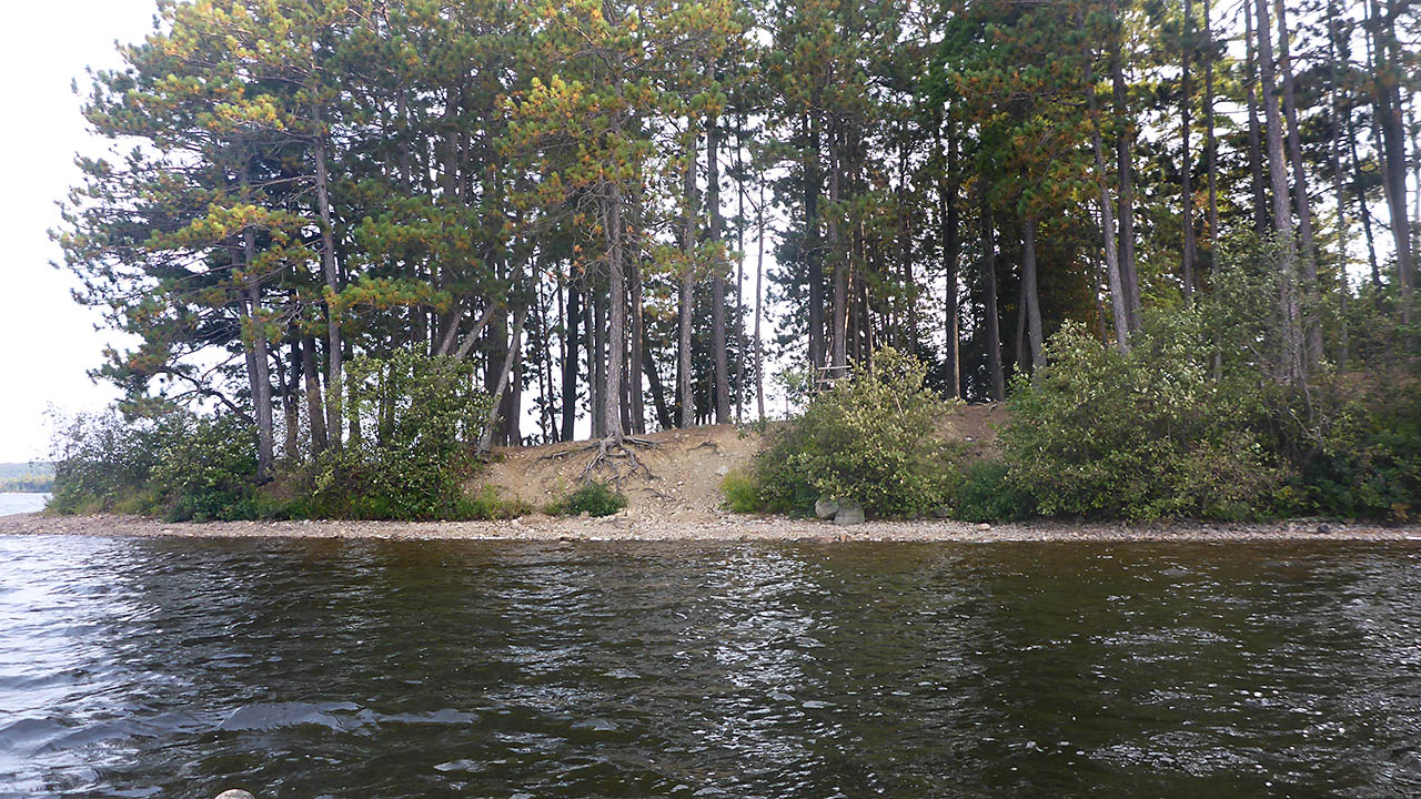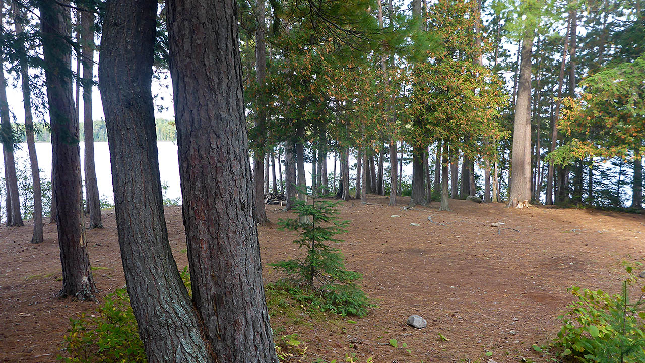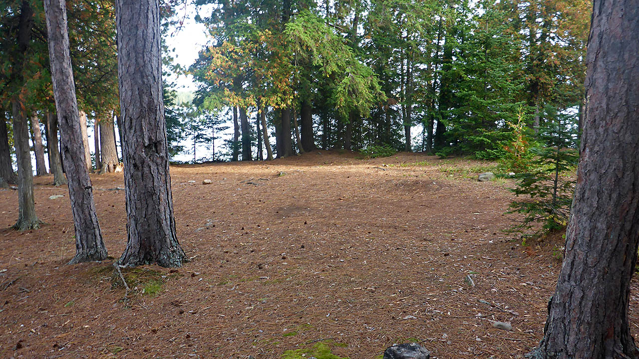 Landing Topography of under-water approach: Smooth gravel beach. Impediments to disembarking from and/or unloading a canoe: None. Topography leading to tent sites: An uphill carry of approx. 10m to firepit, and 20m to tenting area.