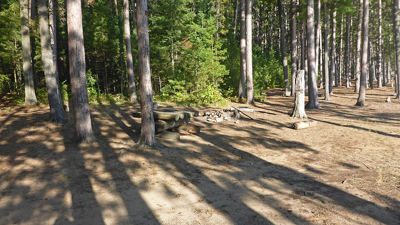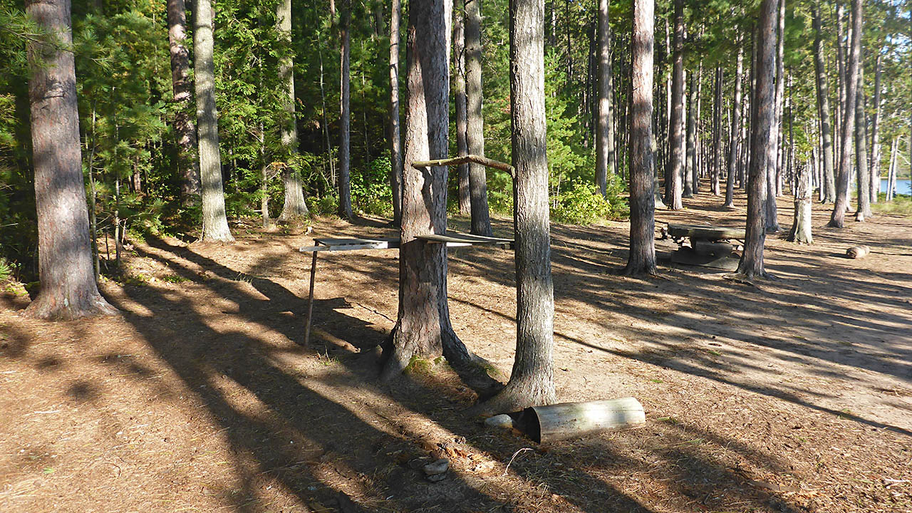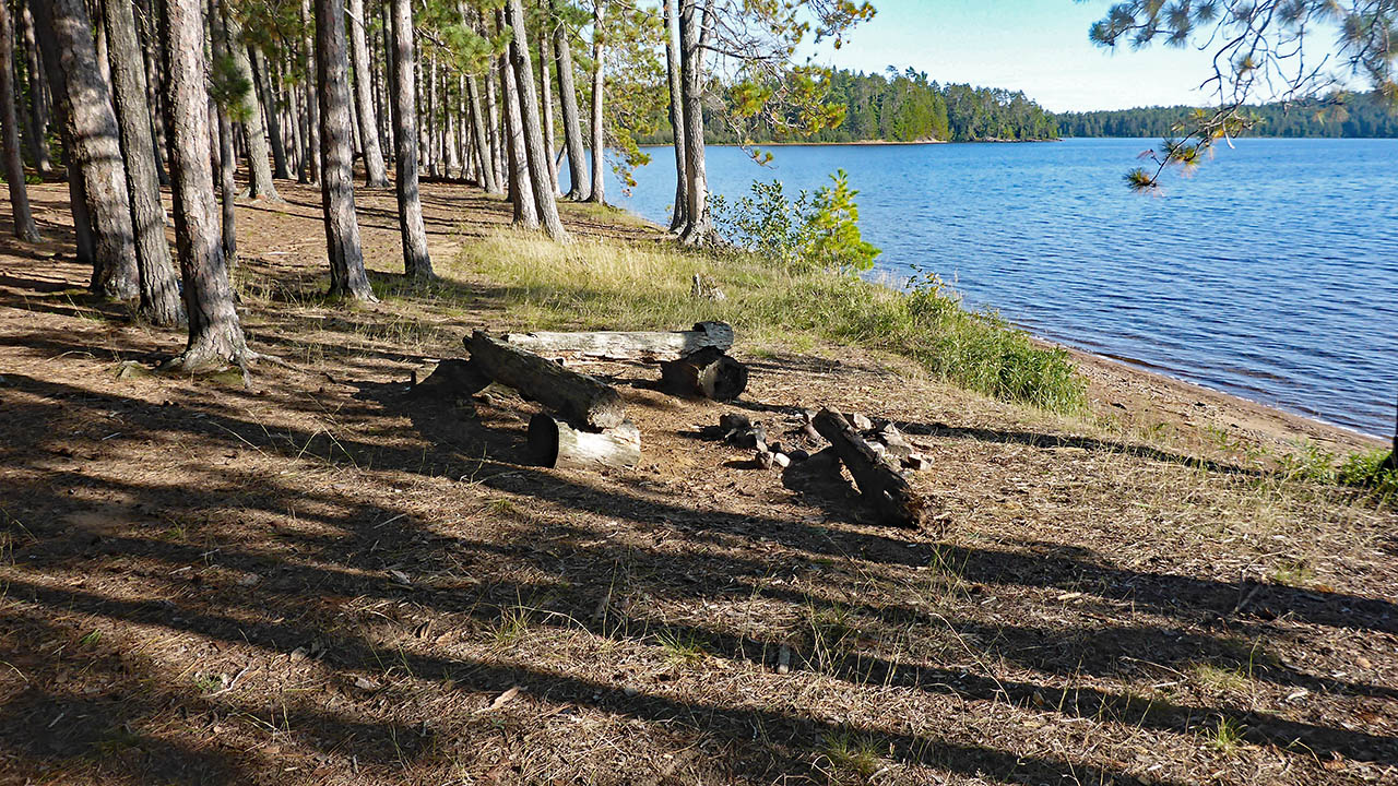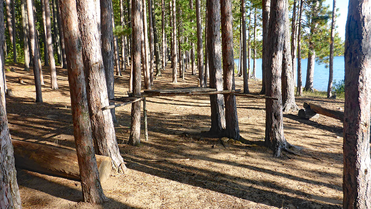 Campsite Campsite maintenance: Regular. Size of open area: 100m+ (total length) x 15m. Extent of tree cover: 80%. Degree of levelness: Flat and level. Number of level tent sites: Numerous North exposure: trees East exposure: trees South exposure: Lake West exposure: Lake General description: With these 3 sites combined, the entire U.S. 1st Infantry could camp here. Well treed in an old growth pine forest, gives an impression of being very open. Very flat and level, with numerous tenting or hammock options. Great view to the west for Algonquin sunsets.Overall accessibility: A 1.5m climb to any of the sites.