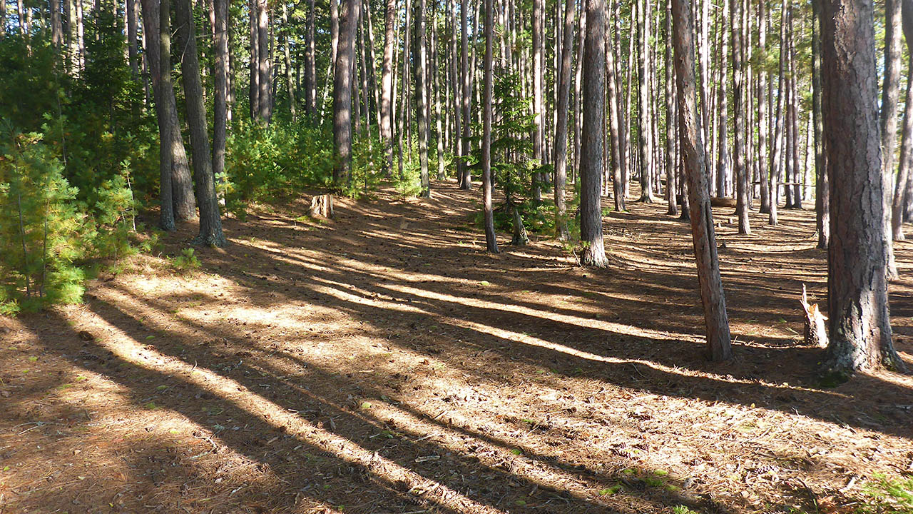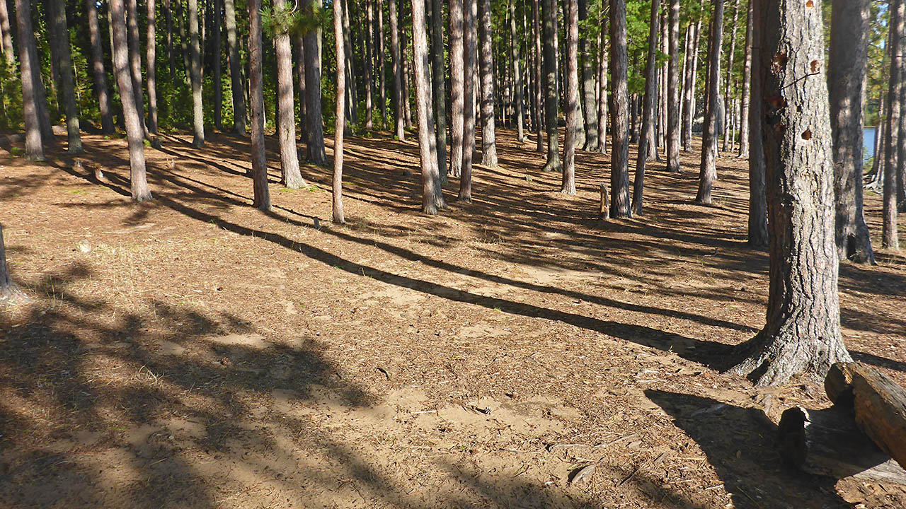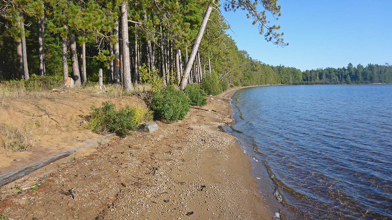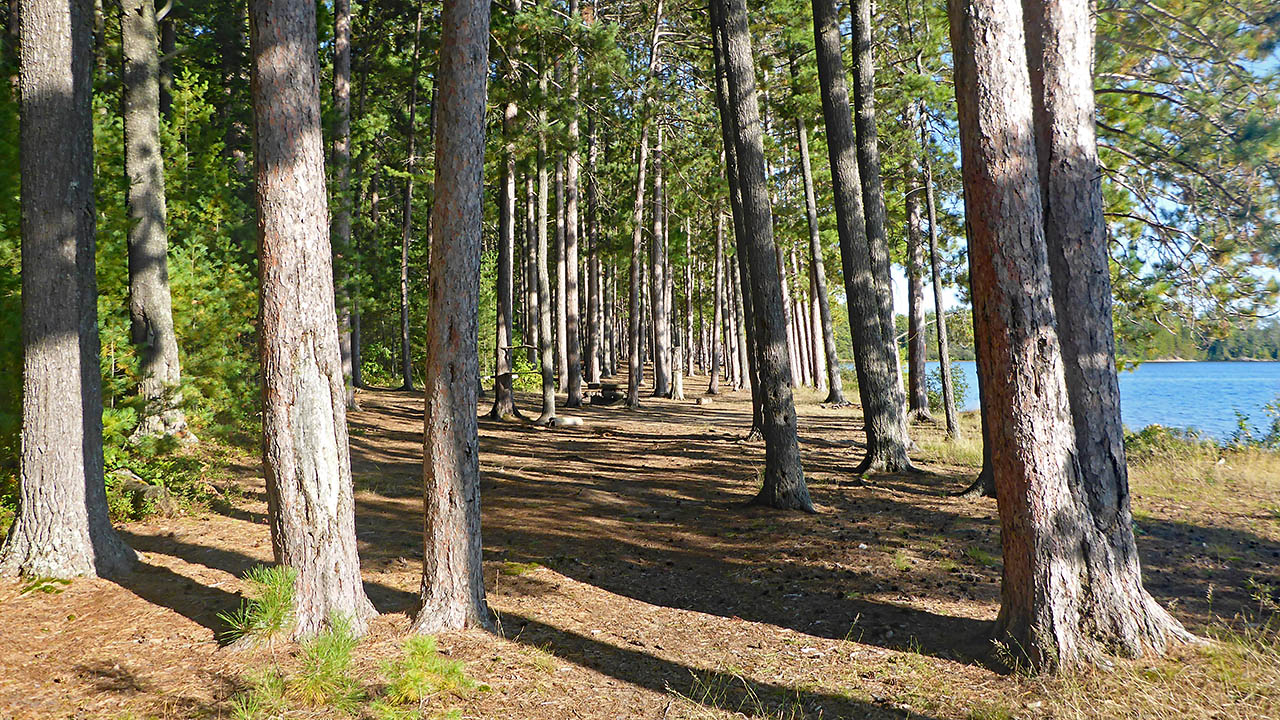 Campsite Campsite maintenance: Regular. Size of open area: 100m+ (total length) x 15m. Extent of tree cover: 80%. Degree of levelness: Flat and level. Number of level tent sites: Numerous North exposure: trees East exposure: trees South exposure: Lake West exposure: Lake General description: With these 3 sites combined, the entire U.S. 1st Infantry could camp here. Well treed in an old growth pine forest, gives an impression of being very open. Very flat and level, with numerous tenting or hammock options. Great view to the west for Algonquin sunsets.Overall accessibility: A 1.5m climb to any of the sites.