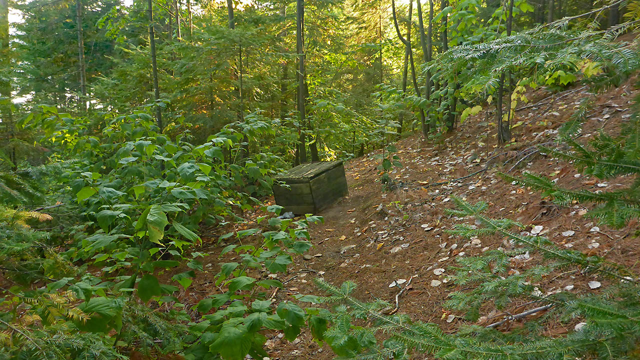 Campsite Campsite maintenance: Regular. Size of open area: 15m x 10m. Extent of tree cover: 40%. Degree of levelness: level. Number of level tent sites: 3+. North exposure: lightly treed. East exposure: trees. South exposure: trees. West exposure: lightly treed. General description: A very well protected site that gives the feeling of being in a bowl. Wind from the west is blocked by a hill, and wind from other directions is deflected by a rise that separates the site from the bay to the west or by the trees on the perimeter to the east. Shade is easily found on the site or at the beach.The thunderbox, while in need of some maintenance, could be considered for basic training for the "cirque du soleil" since using it requires considerable balancing skills. Overall accessibility: No real issues. The path from the northeast side of campsite is a little rooty.