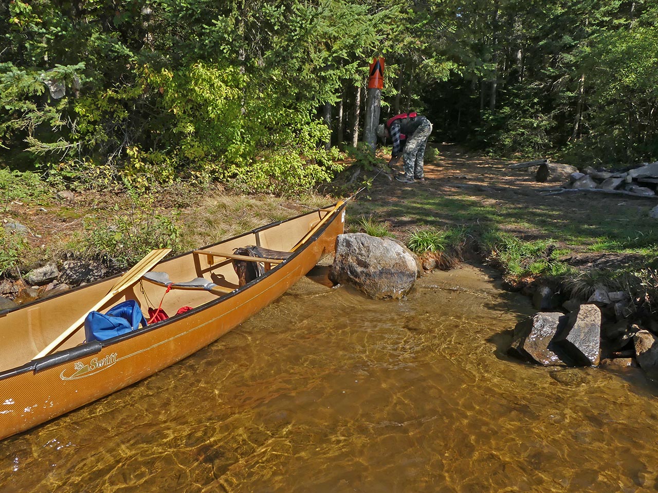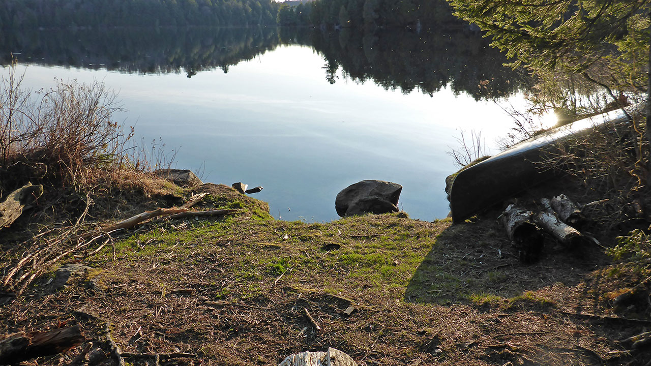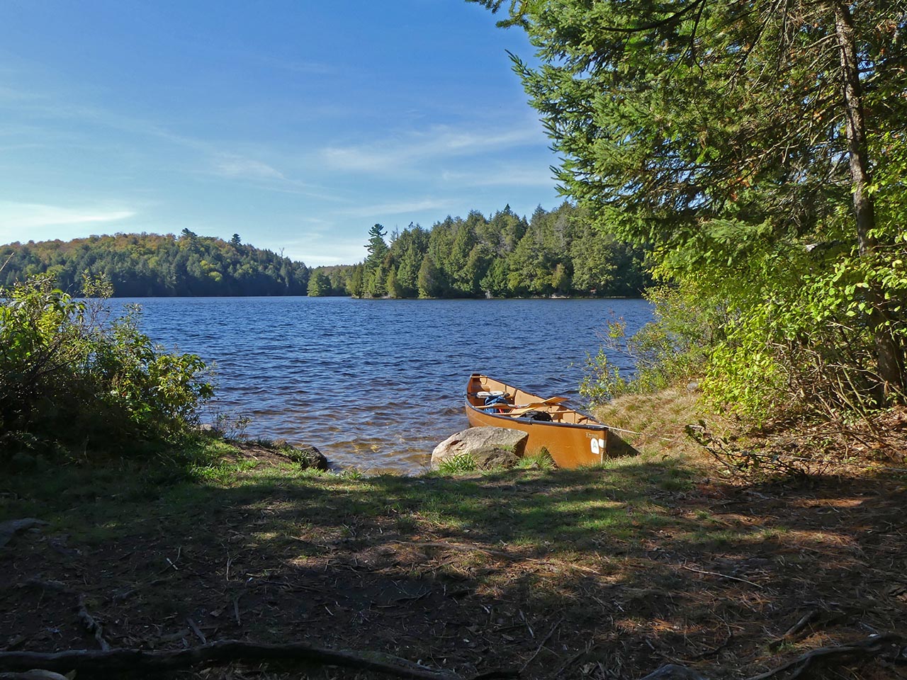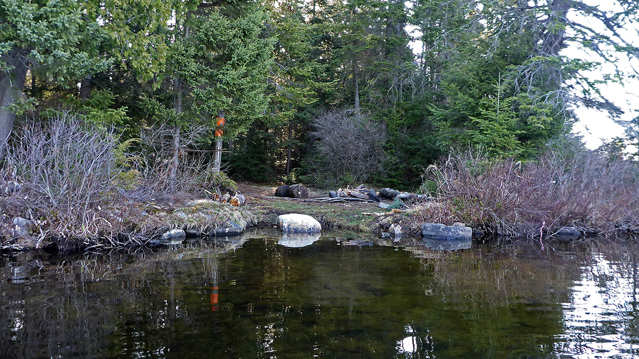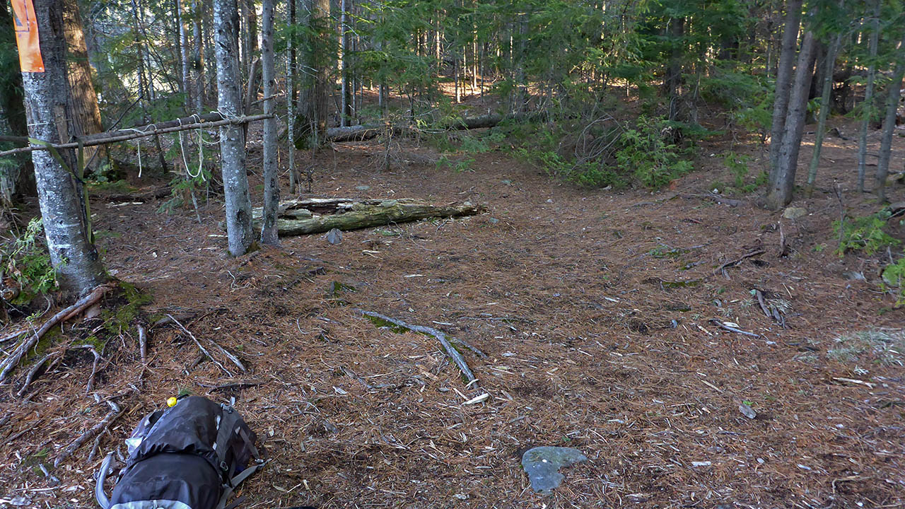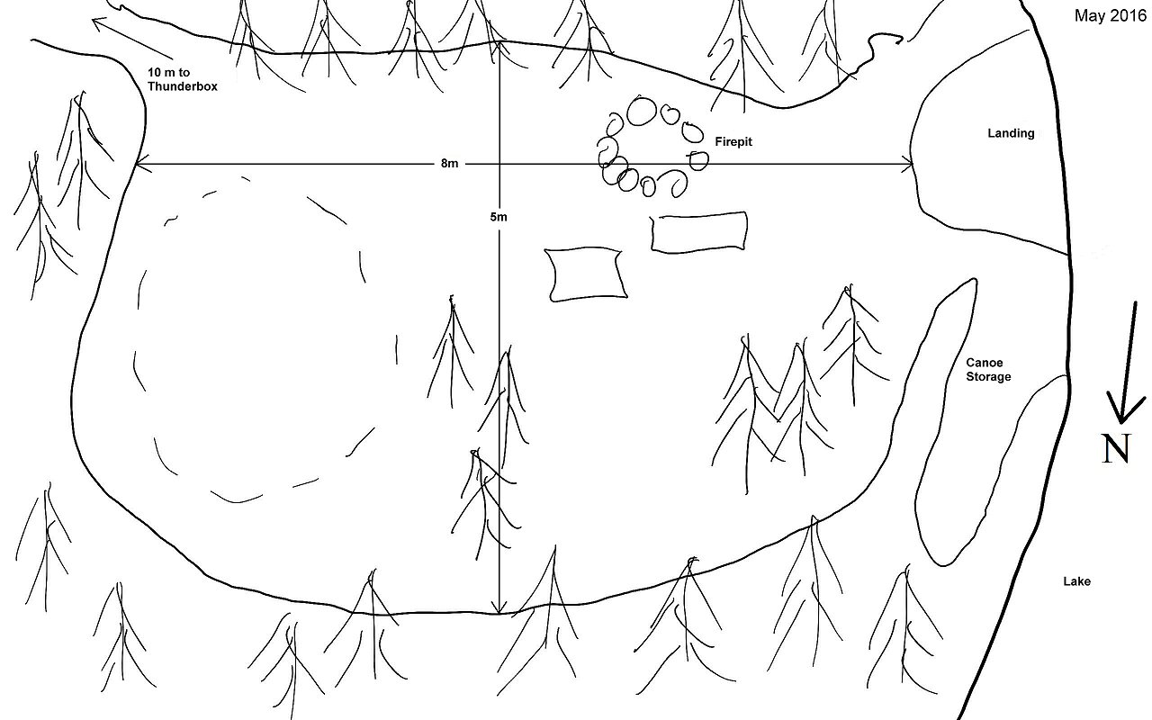 Location: N45° 32.567' W78° 36.978' Landing Topography of under-water approach: Sand and silt. Impediments to disembarking from and/or unloading a canoe: Small landing area, only 1 canoe can load/unload at a time. Topography to tent sites: You are on the site once you have unloaded. View of landing from the water (Photo: B. Bridgeford, Oct. 2017) ... View of landing from the firepit ... Campsite Campsite maintenance: Regular. Size of open area: 8m x 5m. Extent of tree cover: 50% cover, open at firepit. Degree of levelness: Level site. Number of level tent sites: 1. North exposure: Trees. East exposure: Trees. South exposure: Trees and lake. West exposure: View of lake and trees. General description: A small, and level site with 1 tentpad that could accomodate a 4-person tent as most of the other ground is rooty and rocky. Open to the afternoon sun at the firepit. . Overall accessibility: Shallow water at the landing, and once the canoe is unloaded, you are on the site. Tenting area east of the firepit ... Small area north of firepit could hold a small tent ... Looking southwest across the lake (Photo: B. Bridgeford, Oct. 2017) ... ![]() Thanks to Jeffrey McMurtrie of Jeff'sMap for supplying the base-layer map component by Creative Commons licensing. Submitted by Chris Taylor .. Visited May 2016 .. Submission August, 2016 |