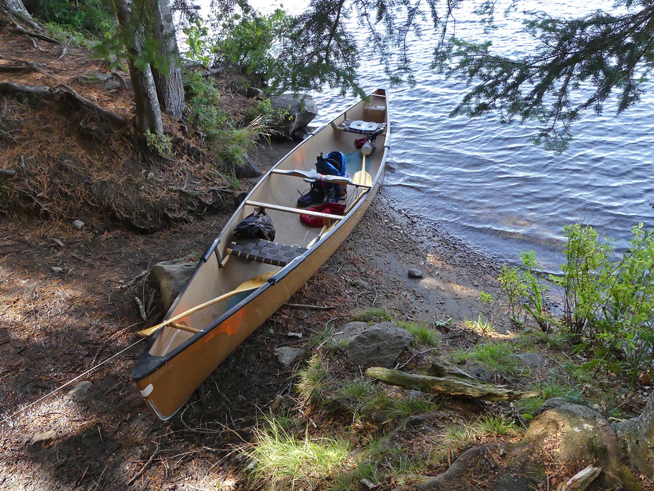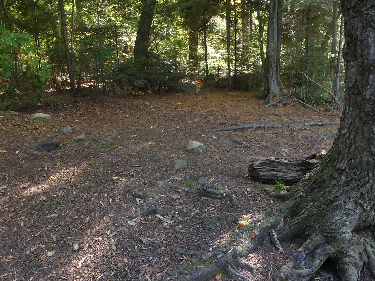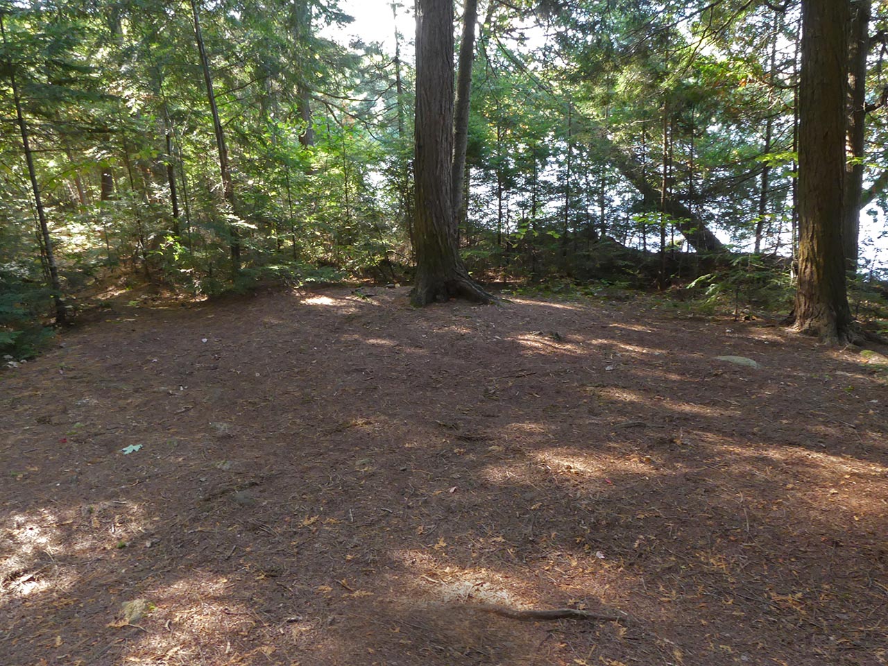 Landing Topography of under-water approach: Small sand and gravel beach. Impediments to disembarking from and/or unloading a canoe: None. Topography to tent sites: 8 foot rise to campsite, with rocks and roots. Landing as seen from the water ... Campsite Campsite maintenance: Regular. Size of open area: 20 x 20 feet. Extent of tree cover: 100%. Degree of levelness: Slight slope. Number of level tent sites: Two. North exposure: Trees. East exposure: Trees. South exposure: Trees. West exposure: Trees and narrow opening to the southwest. Grade up from the landing to the firepit ... One small tentsite close to the firepit ... A medium size tentsite is set into the trees ... View from the landing, looking southwest toward the island ... General description: Small sloping, rooty and treed-in campsite with sunset view limited to being from the landing. Overall accessibility: Moderate. ![]() Thanks to Jeffrey McMurtrie of Jeff'sMap for supplying the base-layer map component by Creative Commons licensing. Submitted by Barry Bridgeford .. Visited Oct. 2017 .. Submission Oct. 2017 |