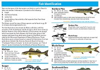 A tall poster describing 36 species of Ontario sports fish. It is colourfully illustrated and detailed with information including lengths, distribution, habitat, and identifying characteristics. |