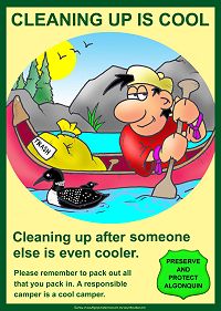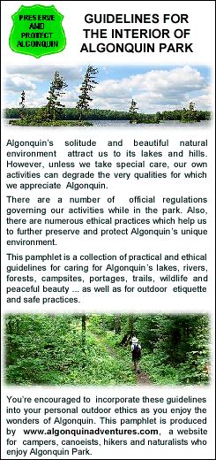 When Park Superintendent John Winters recently emailed back with some statistics, he commented on spreading a positive educational message. With this kind of encouragement, it's hoped that the pamphlet and posters will serve as examples for either Parks Ontario or The Friends of Algonquin to follow for this coming (2003) camping season.