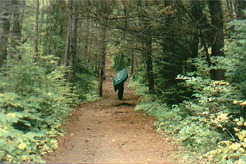Portage From Proulx Lake Portage is on way out on Sept. 23rd, 2001, between Proulx and Opeongo Lakes. Marko Walker was on his first trip. This was his first portage! Photo taken with a Nikon n50, with a 35-80mm lens and polarizing filter.