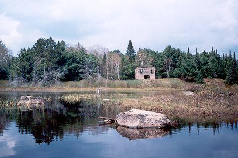 Ruin At The Narrows The remains of this old concrete building sits at the narrows on Club Lake, right at the end of the portage from Mink Lake. Photo was taken with a disposable camera.