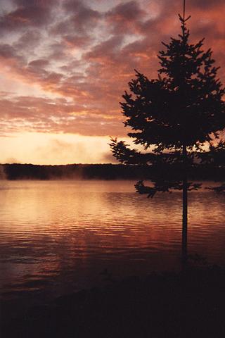 Wake-up Clouds! It was 6:30 am, Sept 12 on Three Mile Lake. The sunrise as casting itself upon the clouds, resulting in various shades of pink and purple. 35 mm Kodak 400 Max Image film.