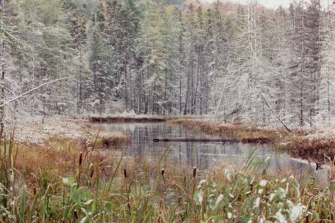 Snow Day "This was in the southwest part of the park, just a little north off Highway 60 as you come in from the west entrance. It was on October 7th, 2001 ... a beautiful but cold day. Temperatures were in the 20'sF with a slight breeze. The water and 'cat-tails' caught my eye. It felt like a 'white Christmas'. Not many snow days here at home in Dallas." Camera was a Canon EOS-3 with a Canon 100-400mm lens. Film was Kodak Royal Gold 100 (print film).