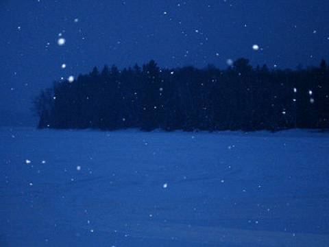 Snow started falling. We took the dogs for a walk and enjoyed the beautiful night sky.