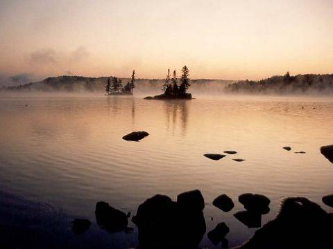 Fleeting MomentI awoke to this beautiful sunrise at my campsite on Kioshkokwi Lake. I was enjoying the view so much that I almost lost the chance to take the photo. The site is on the east shore .. across from Wolfe Bay. Photo was taken with a Minolta X700, 28-80mm zoom and Kodak 400 film.