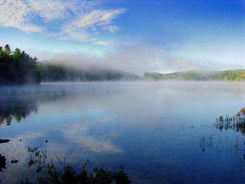 |  | Early Morning on Tom ThomsonThis is the view looking west from our campsite on the east side of Tom Thomson Lake, from where the narrows lead to Bartlett Lake. Photo was taken with a Nikon Coolpix 3100 at 3 meg resolution.