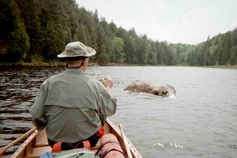 Why One Filters The Water It was the end of May US Memorial Day in 2001. This dead moose was floating in the bay leading to the Pardee Lake portage. Taken with a Canon EOS Rebel G single lense reflex camera.