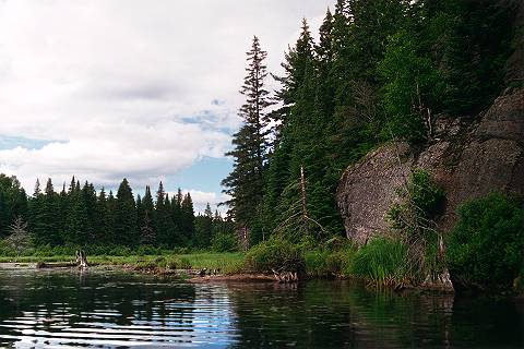 This particular bay is located on the lake's northeast shore. Moose can often be seen feeding in the entry channel as well as at the lake's southern bays. |