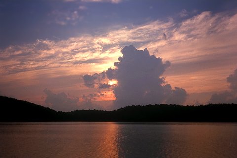 Another element often plays a crucial part in the landscapes' drama. That element is the "big sky". This late afternoon skyscape is from a campsite on Ragged Lake, one portage south of Smoke Lake. |