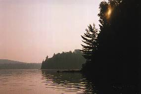 An early morning haze coloured Booth Lake's south shore.
