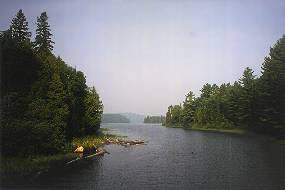 A trail from the portage affords this view from the Booth Lake dam.