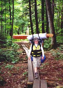 Photo: Tom jr. on the Happy Isle Portage 2180m ...I definitely don't know my limitations. Portage is brutal. Who would have thought 2180m was so far. Couldn't manage the canoe and my pack so we had to make 2 trips. We decided to forget about Merchant Lake and camp on Happy Isle Lake. Oh well.