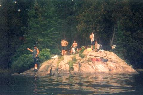 We spent the day playing crib under the tarp (lost every game!!!) and fishing. The fishing was very good. We caught some good sized smallmouth that gave all 7 of us a full fillet with some left for a late evening snack. We had so much fish that we postponed the regular night two meal (penne and sausage) to day 3.