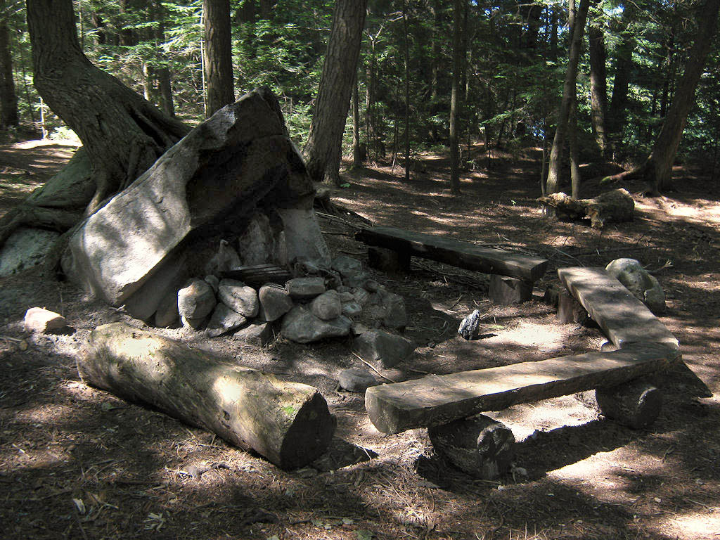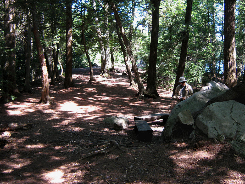 Campsite Campsite maintenance: regular Size of open area: 40' x 40'. Extent of tree cover: 100% canopied over tent/firepit area. Degree of levelness: Once you're back from the actual rock point, the entire site is level .. Number of level tent sites: Plenty of tent sites. North exposure: Protected from the north winds by intervening trees. East exposure: While the landing is open to the east, the tentsites are protected by the intervening trees. South exposure: Full forest to the south. West exposure: Both point and tentsites are protected by trees.