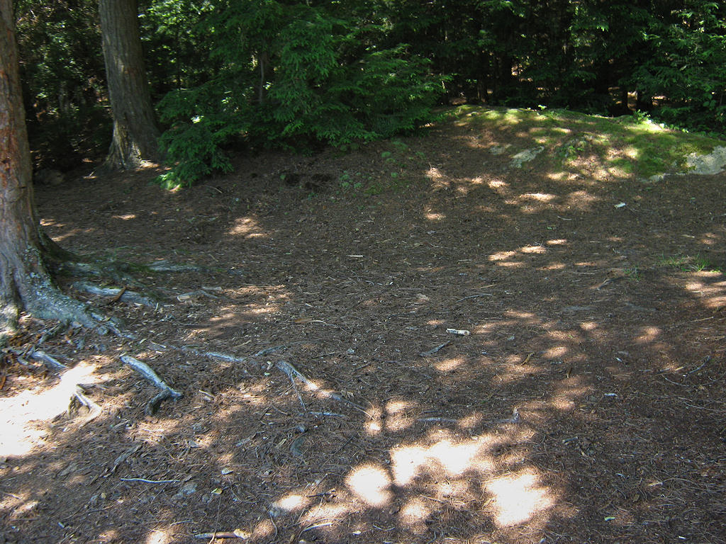 Campsite Campsite maintenance: regular Size of open area: 100' x 70'. Extent of tree cover: Firepit area has no appreciable cover. Tent area has about 50% cover. Degree of levelness: The firepit area is quite level. Tentsite area has some slight undulations. Number of level tent sites: No more than three two person tents .. close together! Thunderbox is well to the rear. North exposure: Protected from the north winds by intervening trees. East exposure: Some blockage of east winds by some trees. South exposure: Open to the south. West exposure: Protected from west wind by forest.