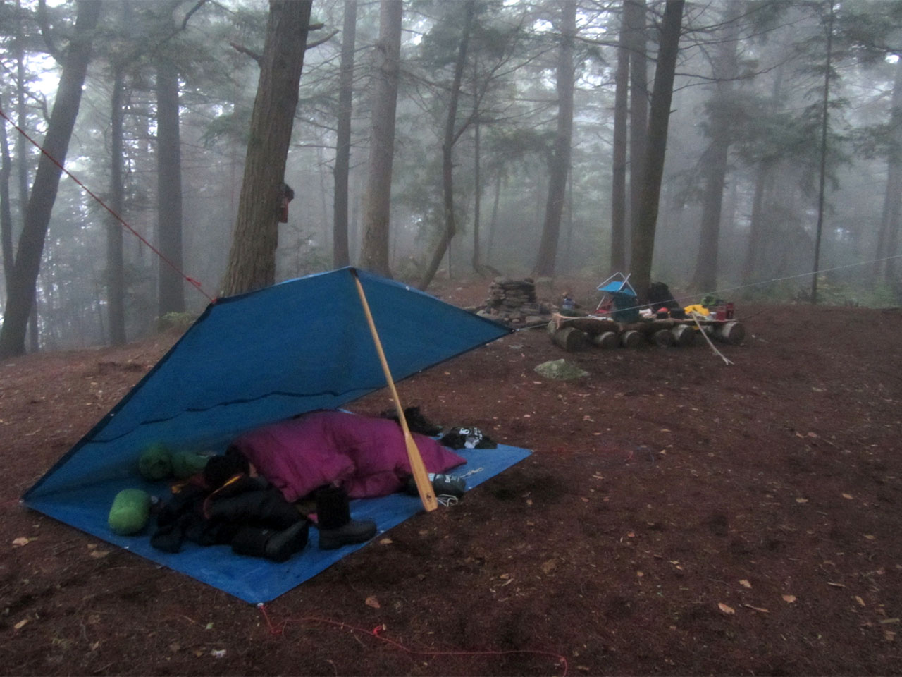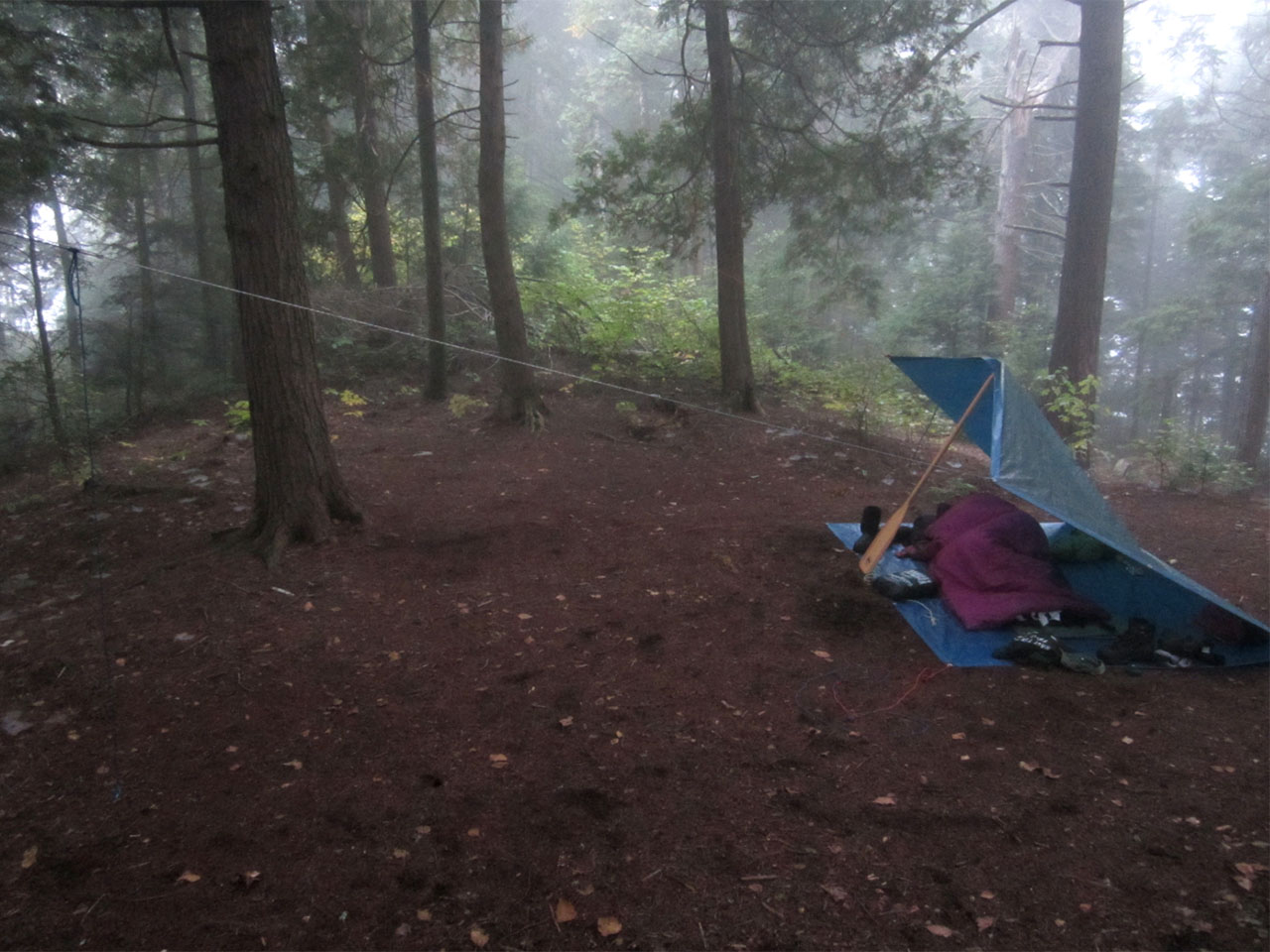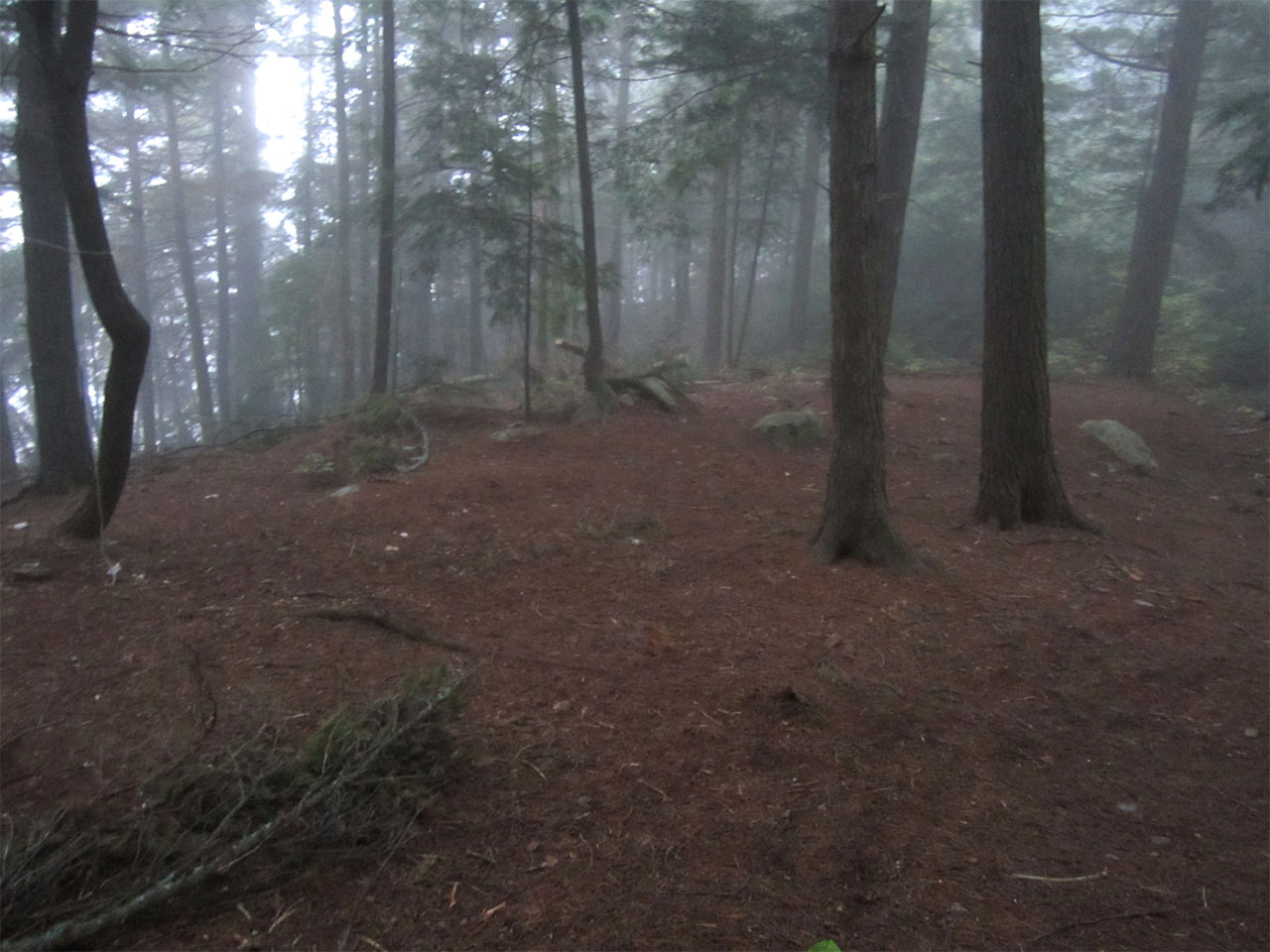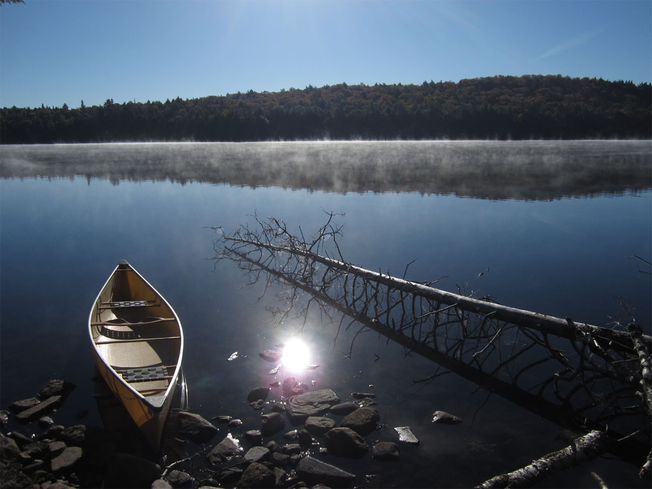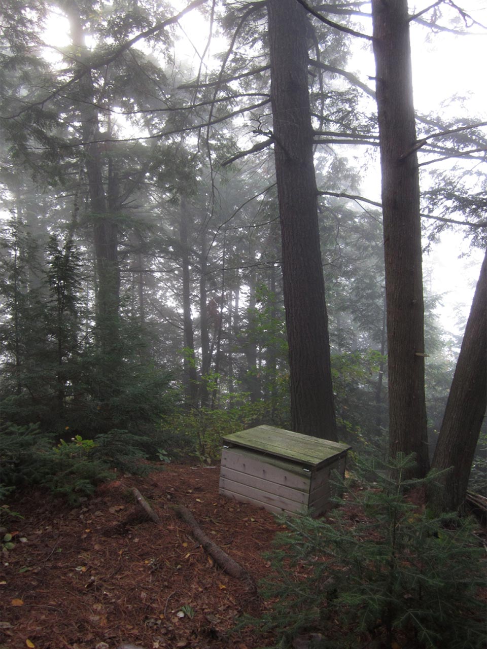 Landing Topography of under-water approach: Rocky, cobbled bottom with gradual shallowing. Impediments to disembarking from and/or unloading a canoe: Some awkward footing but mostly sound. Topography leading to tent sites: 10 to 15 meter climb from landing up to top of island where campsite is. Location of the point to disembark ... View from the top of the island down the hillside back down to the landing ... Campsite Regular or low-maintenance: regular Size of open area: Substantial open area, approximately 10 meters by 30 meters./p> Extent of tree cover: Nearly complete - 90% with only dappled sunlight getting through Degree of levelness: Crowned, but with a relatively broad (5 meter) level area on top of the island. Number of tent sites: At least two large ones - many smaller possibilities. North exposure: Very limited - heavily forested to the north. East exposure: Some exposure. While forested, it is an elevated area that can still have some exposure although it would be lessened somewhat. South exposure: Very limited and heavily forested to the south. West exposure: Some exposure. While forested, it is an elevated area that can still catch the wind from the west. Southwest over the firepit and beyond ... View north from the southern end of the open area, of the open layout of the tenting area and firepit ... View south, with the fire pit immediately behind you, the thunderbox is another 15 meters through the woods ... Looking northeast from firepit, a second view of the northern half of the site ... A pleasant and somewhat obstructed view from the thunderbox, of the lake and mature white pines ... General description: While this island is smack dab in the middle of the lake, this site offers a rather private setting with little visibility of the water from the fire pit and tentsite area. The landing is somewhat rugged and small, so that more than one canoe would pose a minor delay. There is ample room to store a beached canoe on the shoreline. The climb is short and steep up to a large, wooded but generally level and open area. Views from the top of the island are hindered by the forested hillside but a walk down either side allows access to pleasant areas to sit and relax by the water's edge. The path to the thunderbox is to the south and is an adequate distance from the tenting area and from the other campsite on the island to offer privacy. Overall accessibility: Average to good. Does not offer the majestic views of this beautiful lake but is a nice, roomy and secluded spot. View of the morning sun from the campsite's landing or "porch" ... Sunset from the western "porch" of the campsite ... ![]() Thanks to Jeffrey McMurtrie of Jeff'sMap for supplying the base-layer map component by Creative Commons licensing. Submitted by Joe Zaleski, October 21, 2013 .. visited October 2013. |